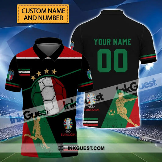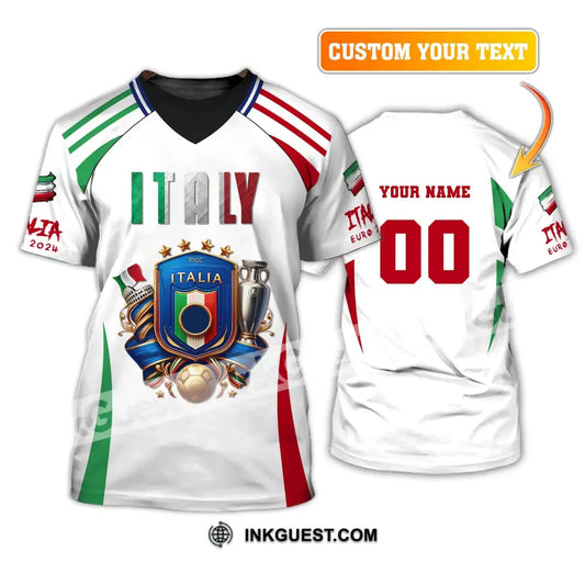 Unisex-Shirt – Benutzerdefiniertes Shirt mit Name und Nummer, Euro 2024, Italien-Team, Grün und Weiß