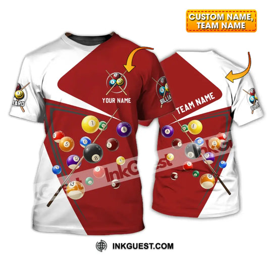 Unisex-Shirt - Benutzerdefiniertes Namens- und Teamnamen-Shirt - Rot-Weiß-Shirt für Billardliebhaber
