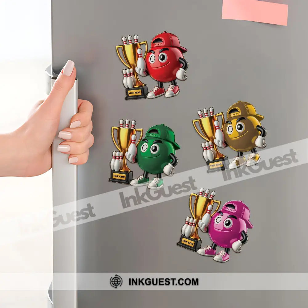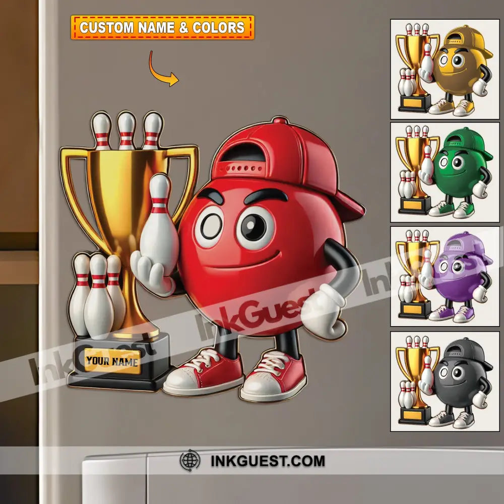 Bowling Champion Custom Color And Name - Personalized Fridge Magnet