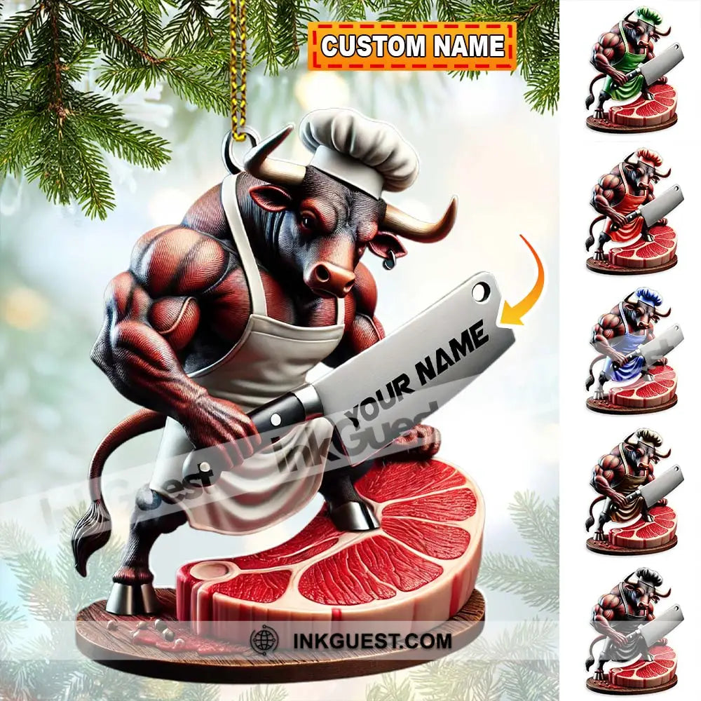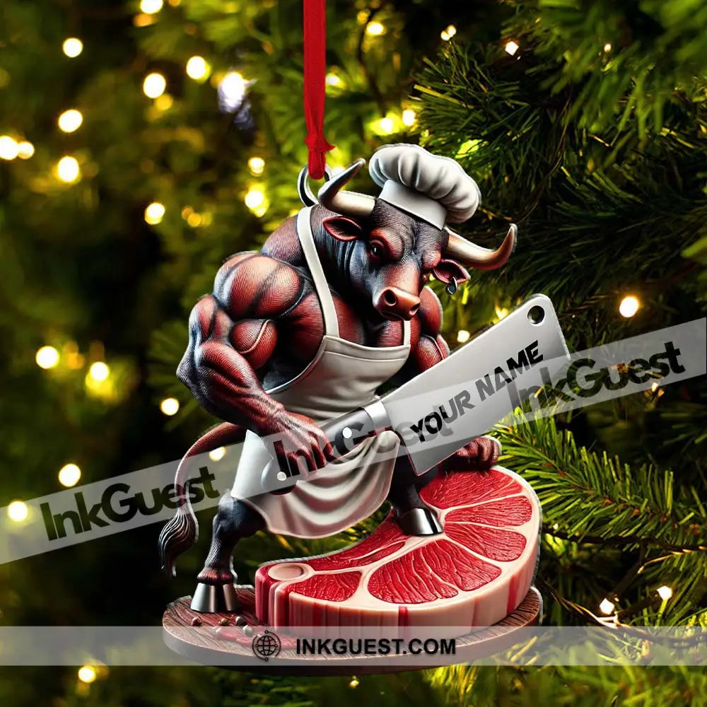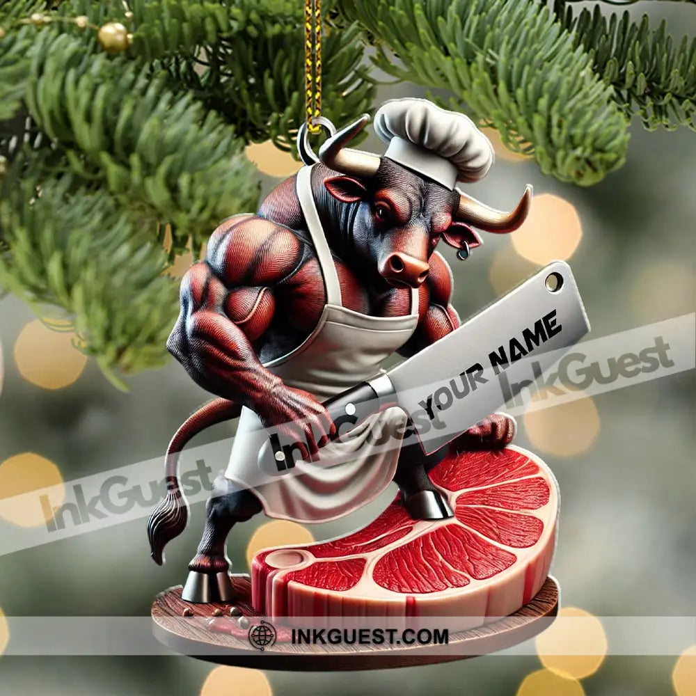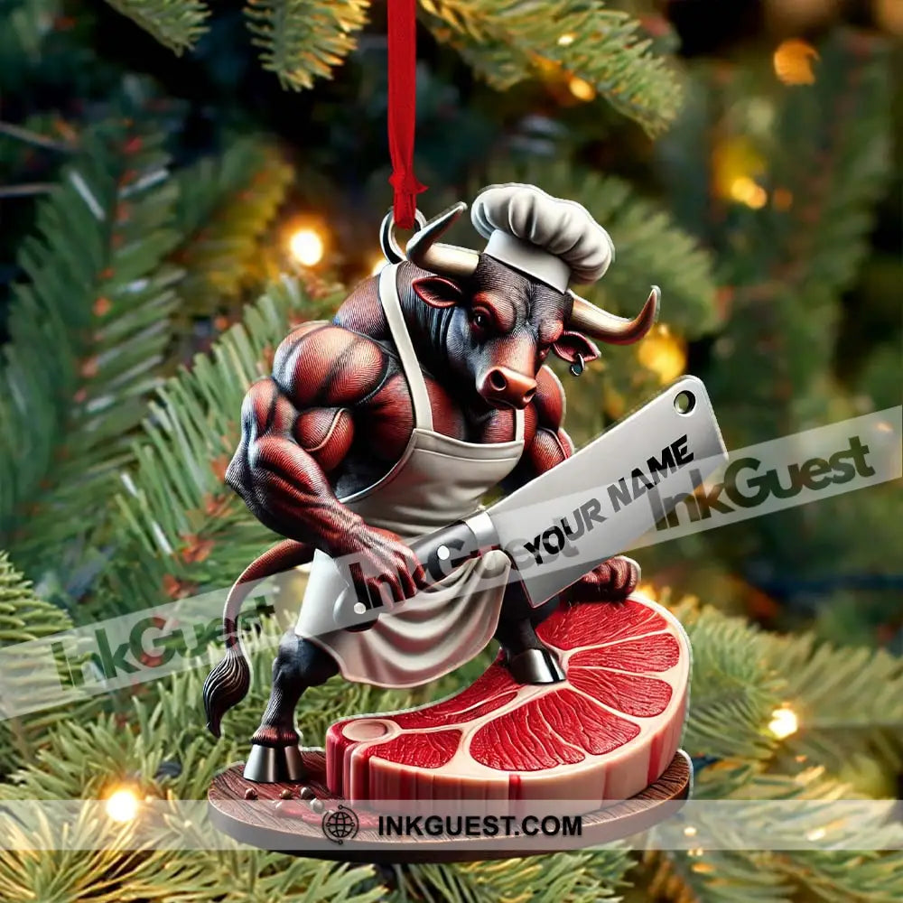 Custom Name Butcher Ornament, Butcher Shop Christmas Gift Decoration