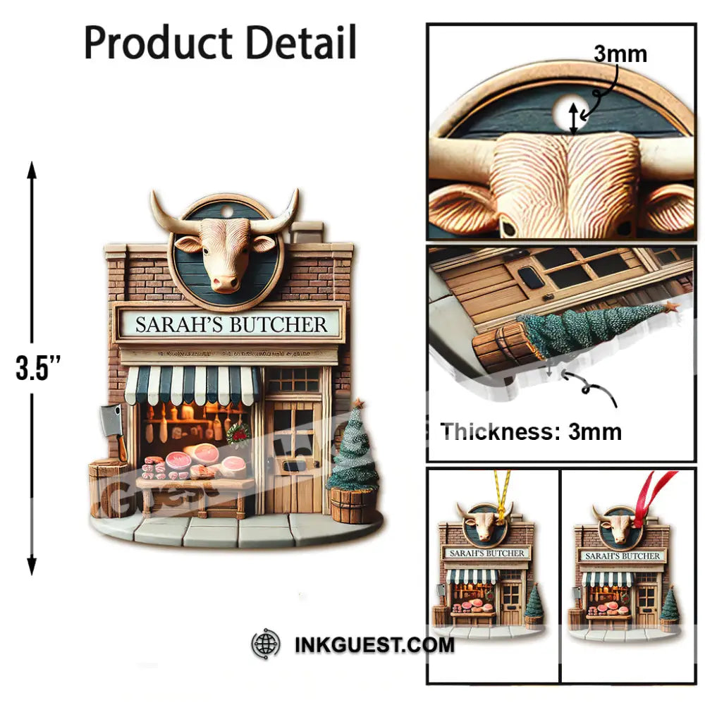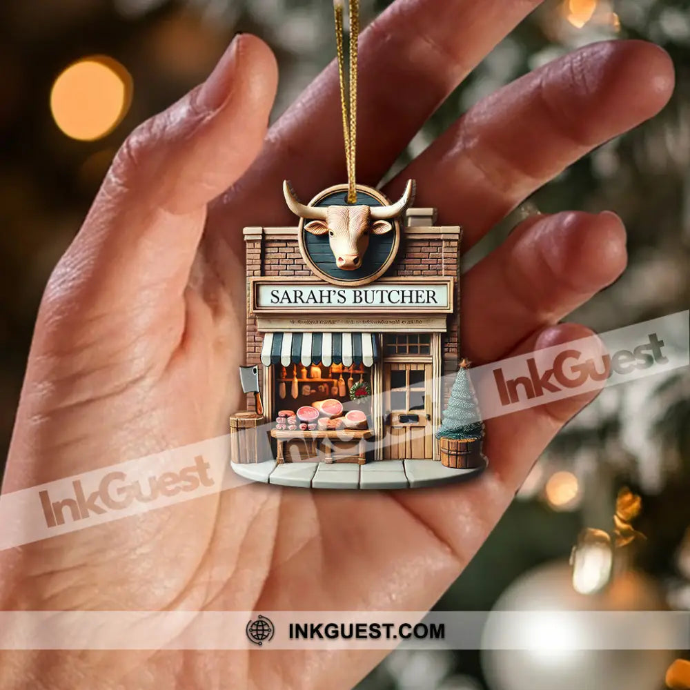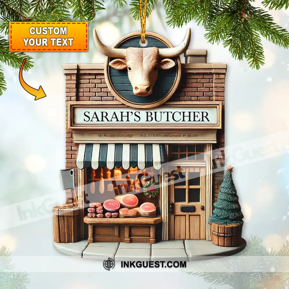 Custom Name Butcher Store Ornament, Butcher Store Christmas Decoration