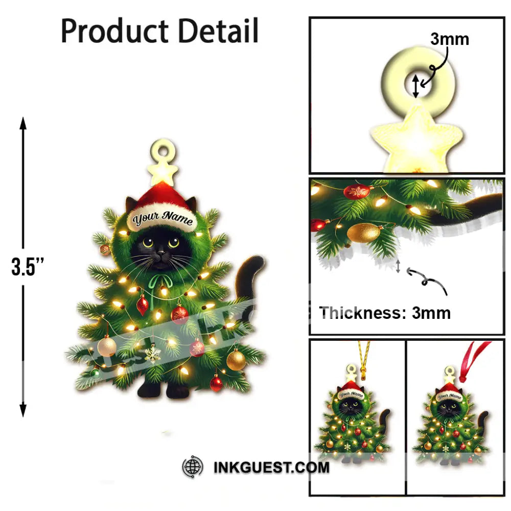 Custom Name Cat Christmas Tree Ornament, Cat Christmas Gift