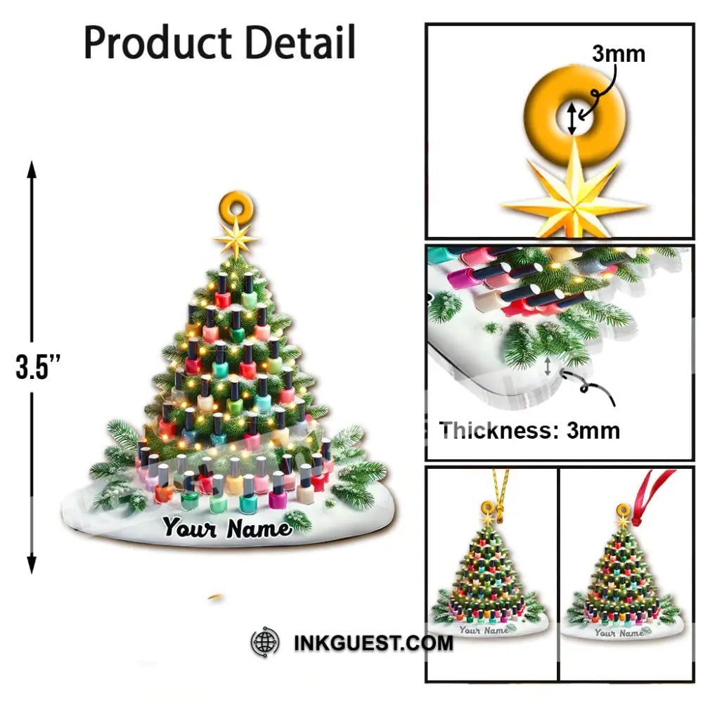 Custom Name Nail Christmas Tree Ornament, Nail Artist Christmas Gift