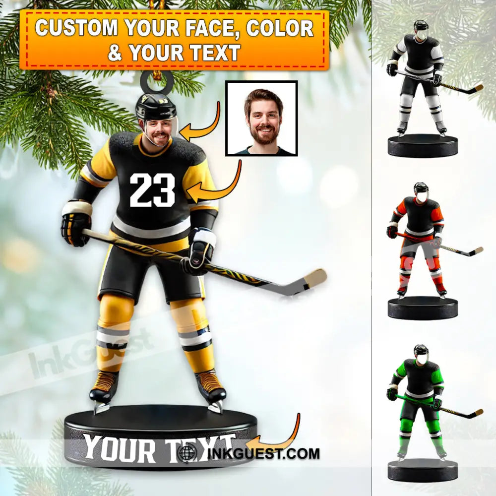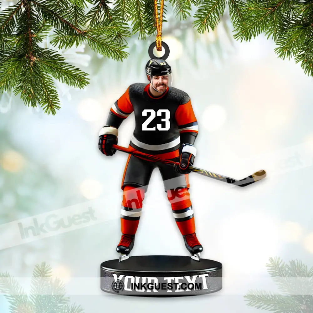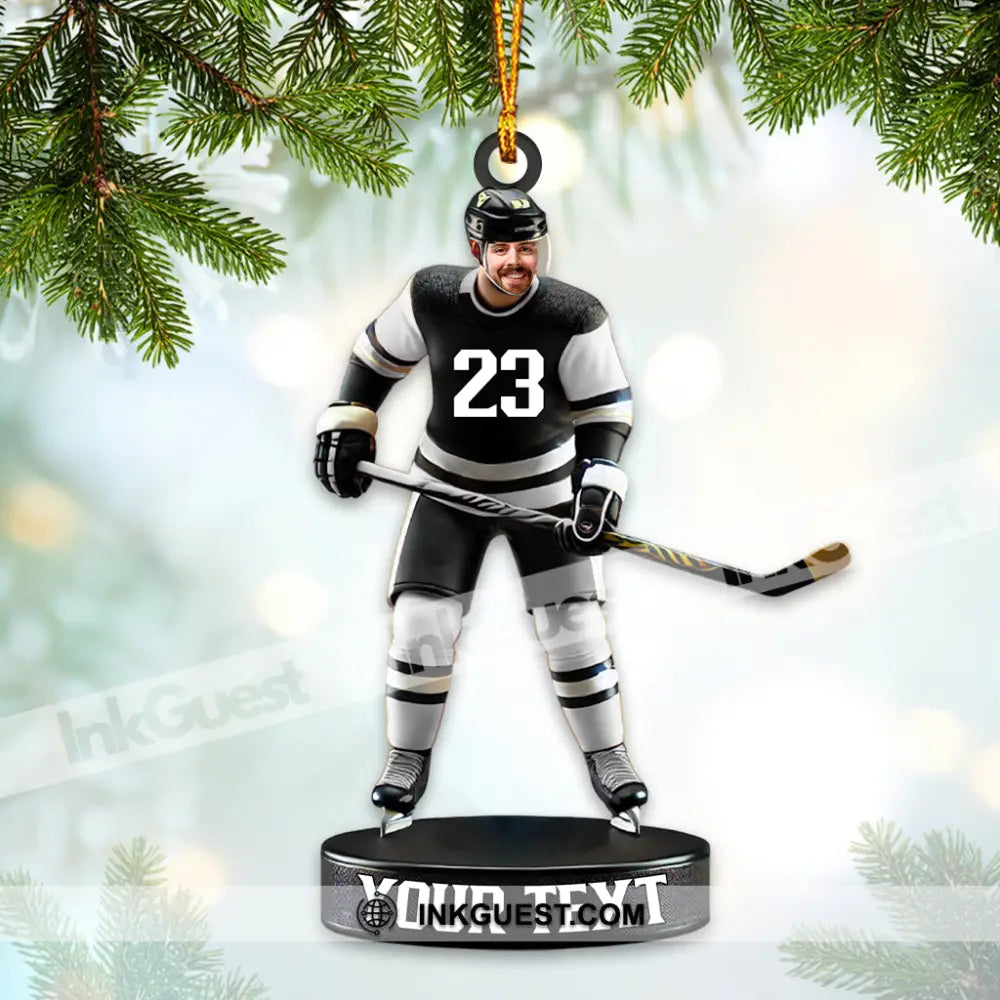 Custom Photo and Name Ice Hockey Ornament, Christmas Gift Decoration