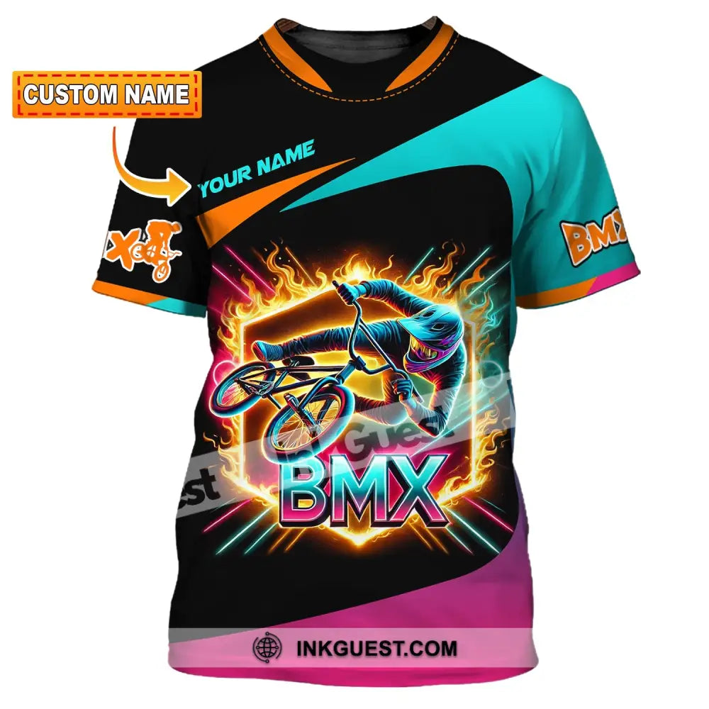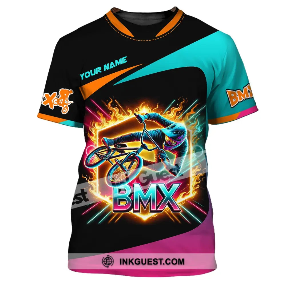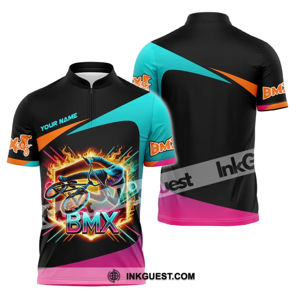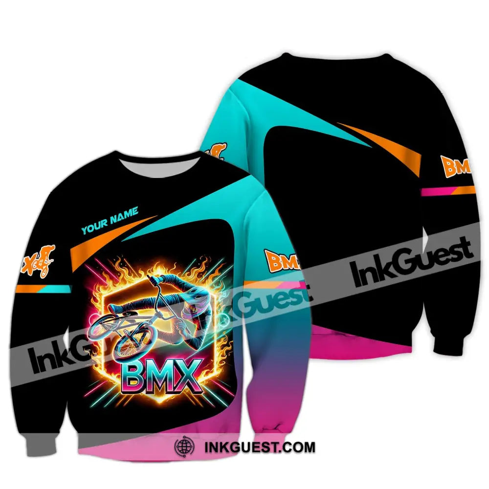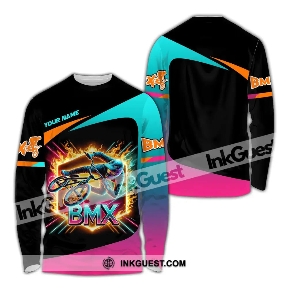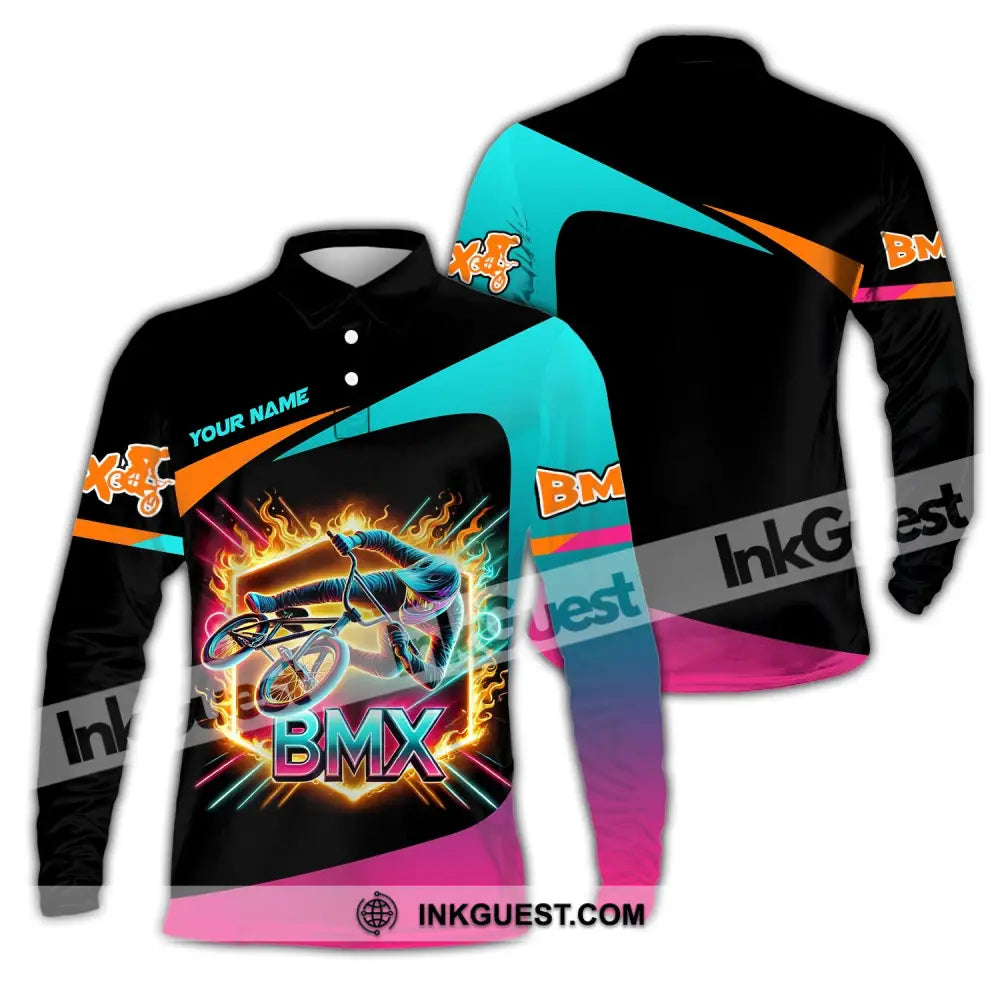 Man Shirt, Custom Name Bicycle Moto Cross Shirt, BMX Polo Shirt Long Sleeve Hoodie