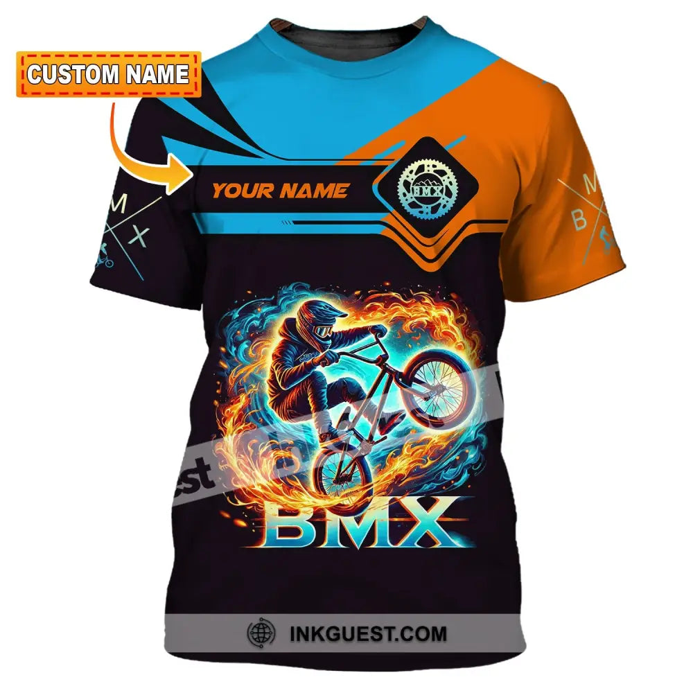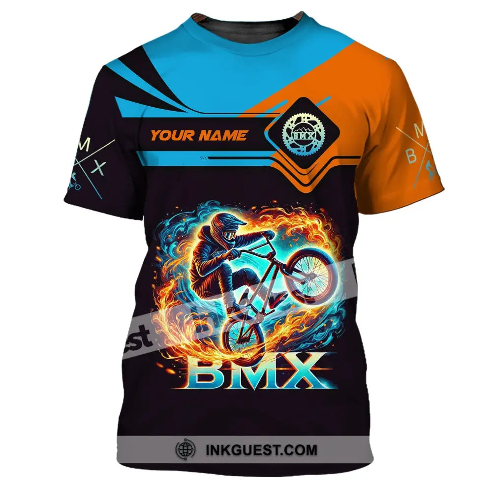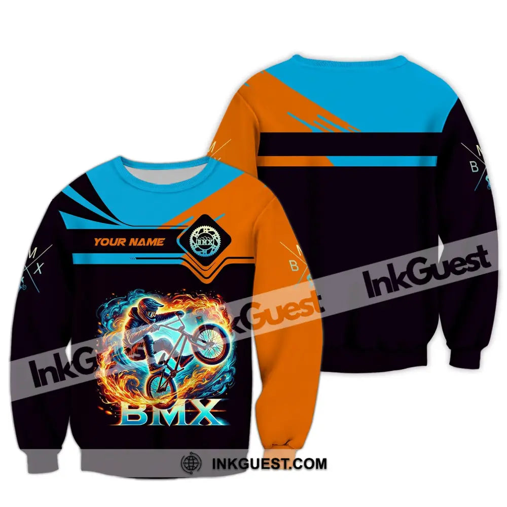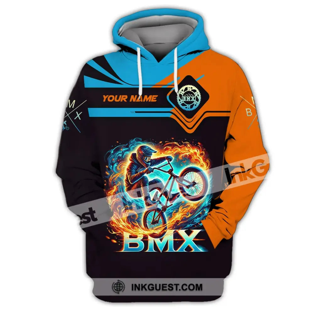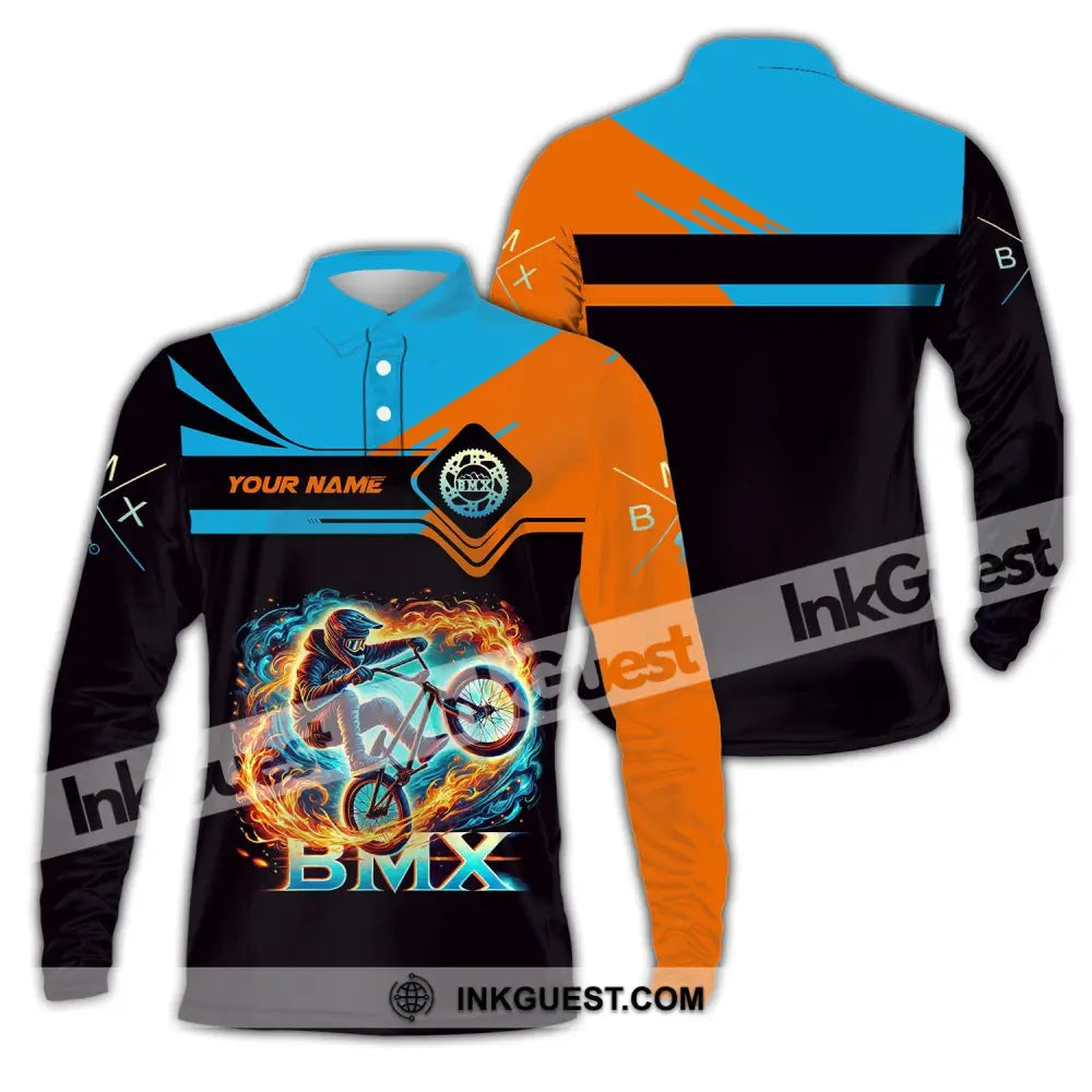 Man Shirt, Custom Name Bicycle Moto Cross Shirt, BMX Polo Shirt Long Sleeve Hoodie