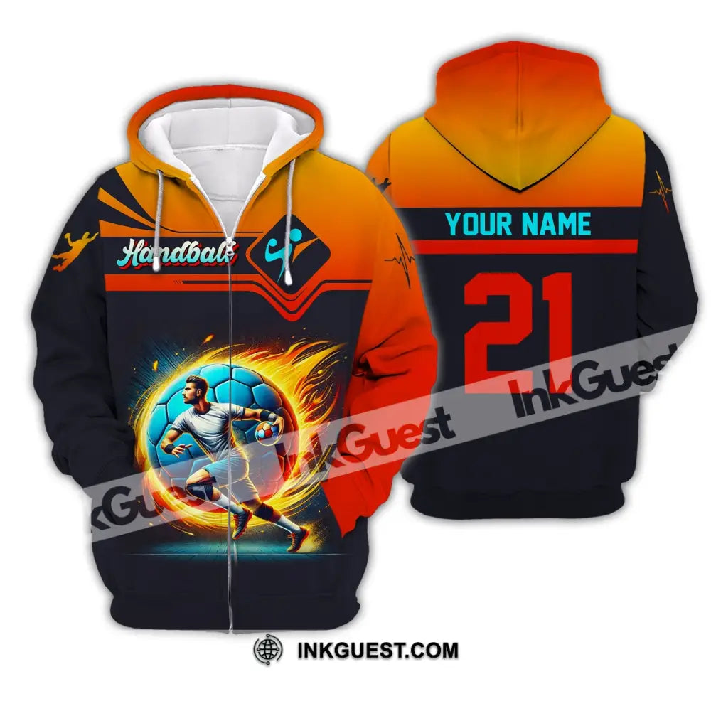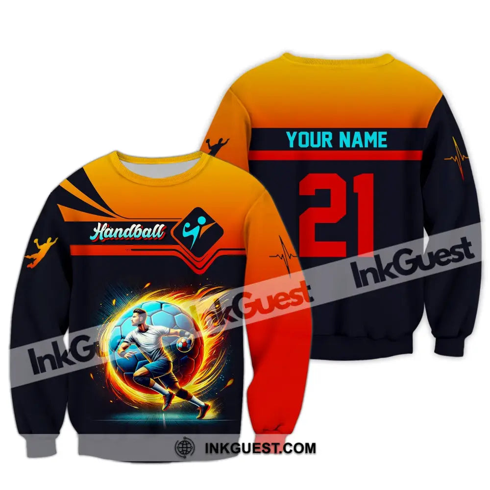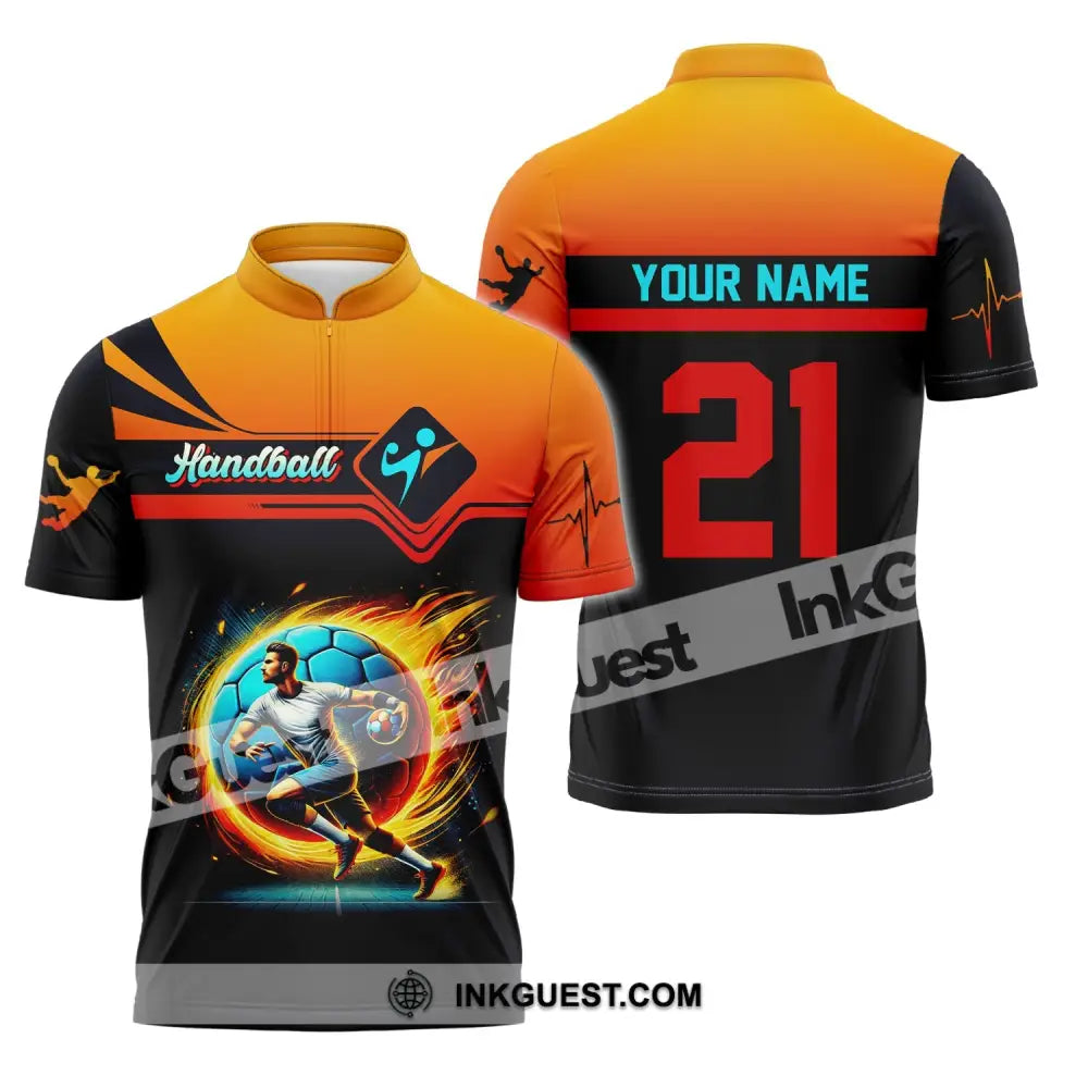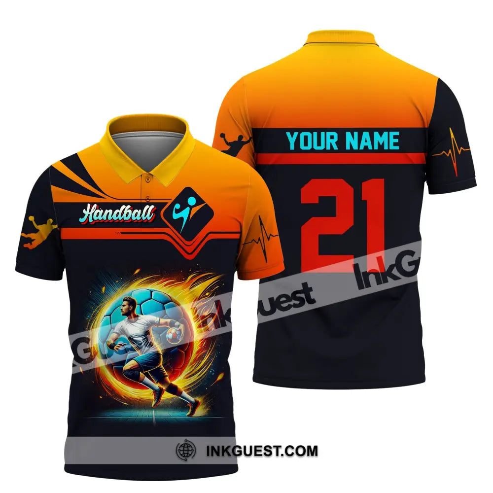 Man Shirt, Custom Name Handball Shirt, Handball Long Sleeve Hoodie Polo Shirt, Handball Team Uniform