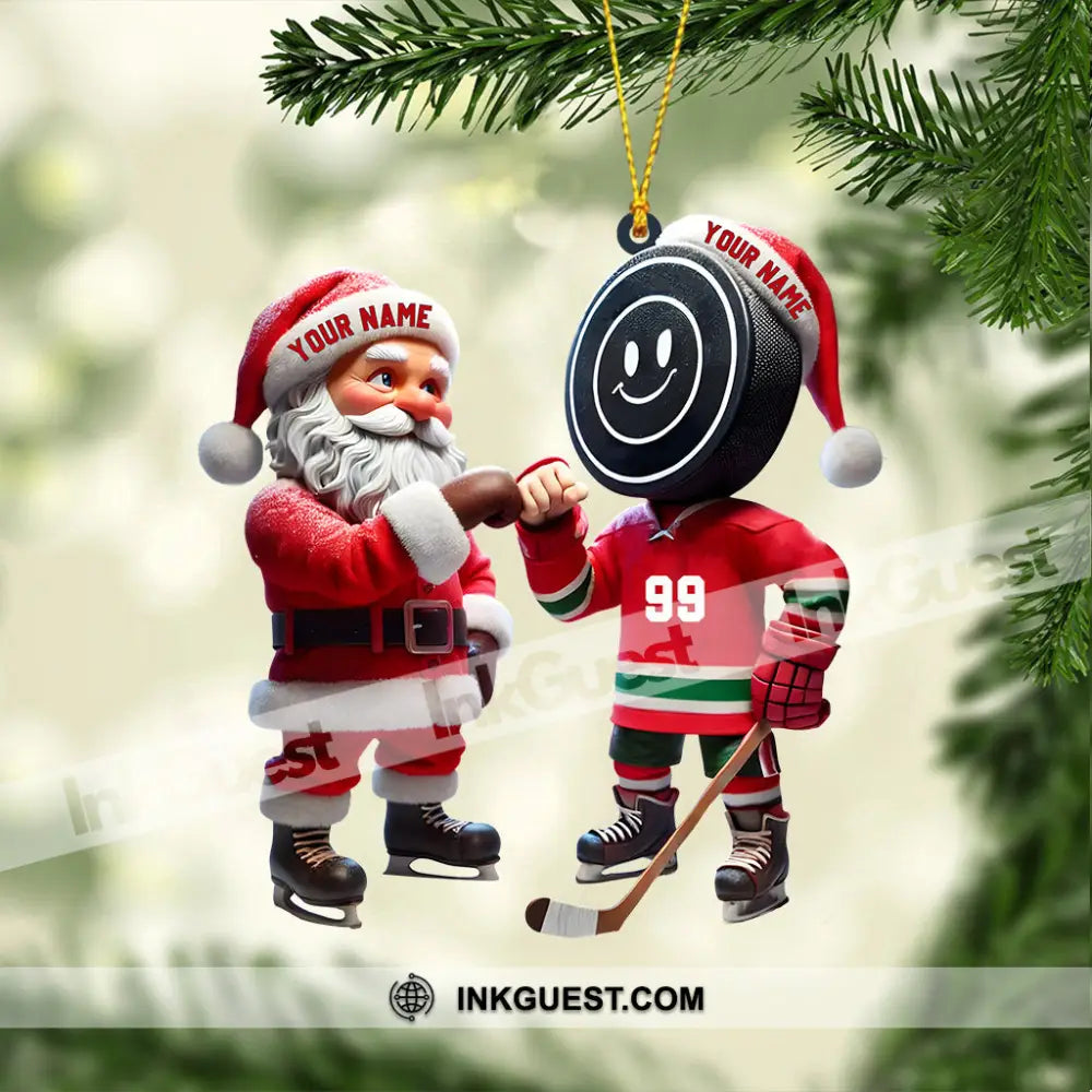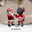 Santa And The Hockey Player Christmas Ornament, Personalized Ornament