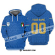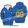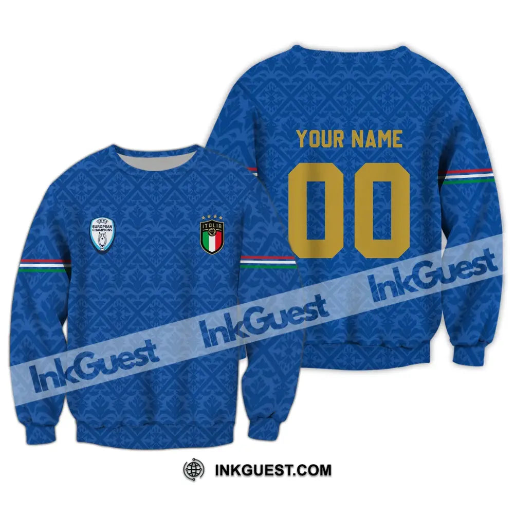 Unisex-Shirt – Benutzerdefinierter Name und Nummer, italienisches Nationalteam, blaues Shirt