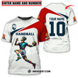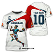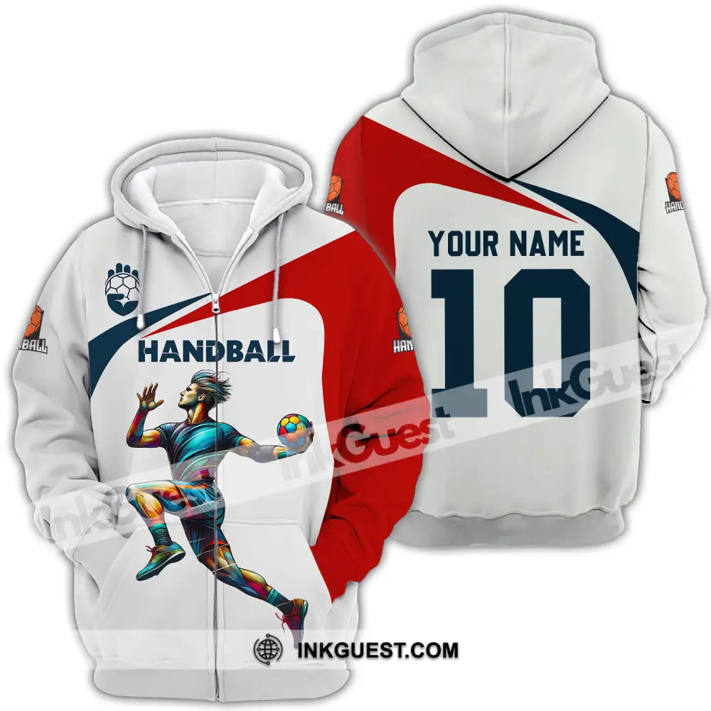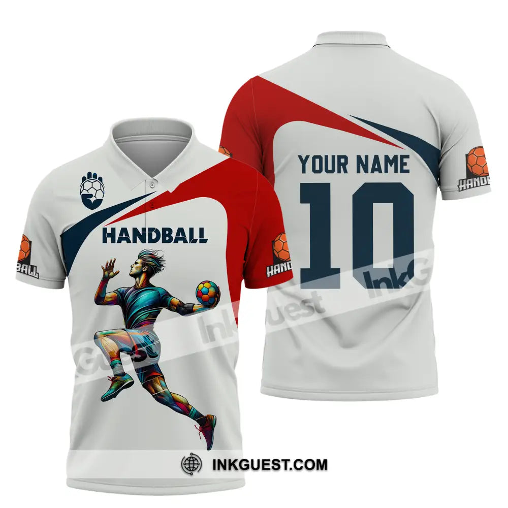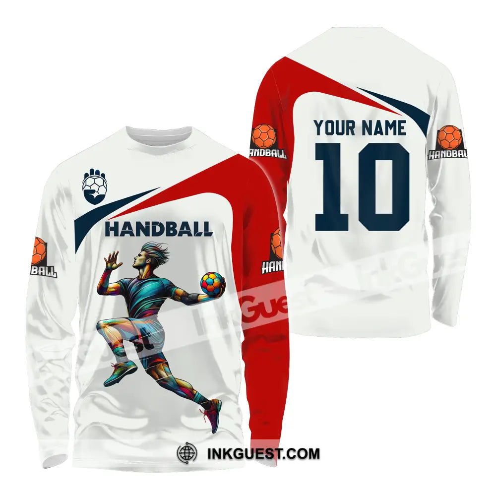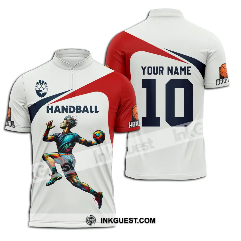 Unisex Shirt - Custom Name And Number Sport Shirt, Handball White Red Classic
