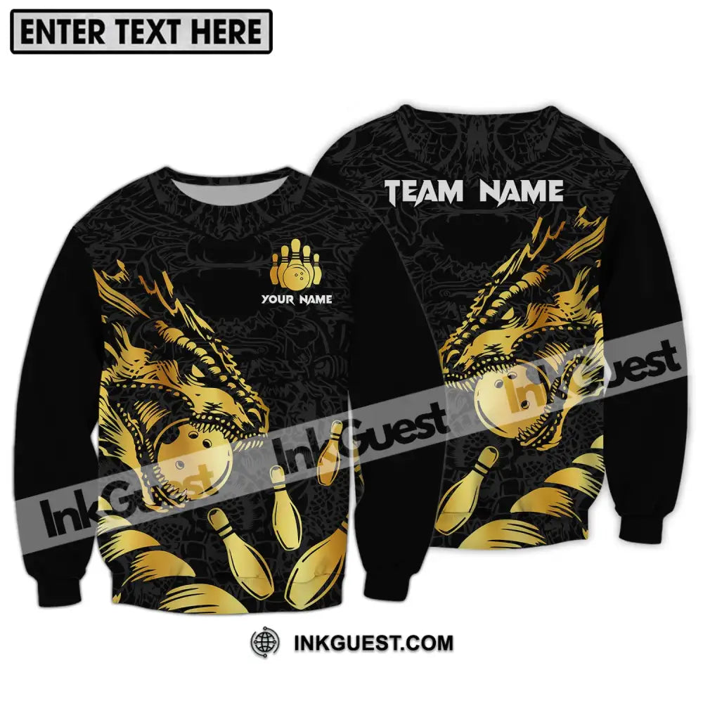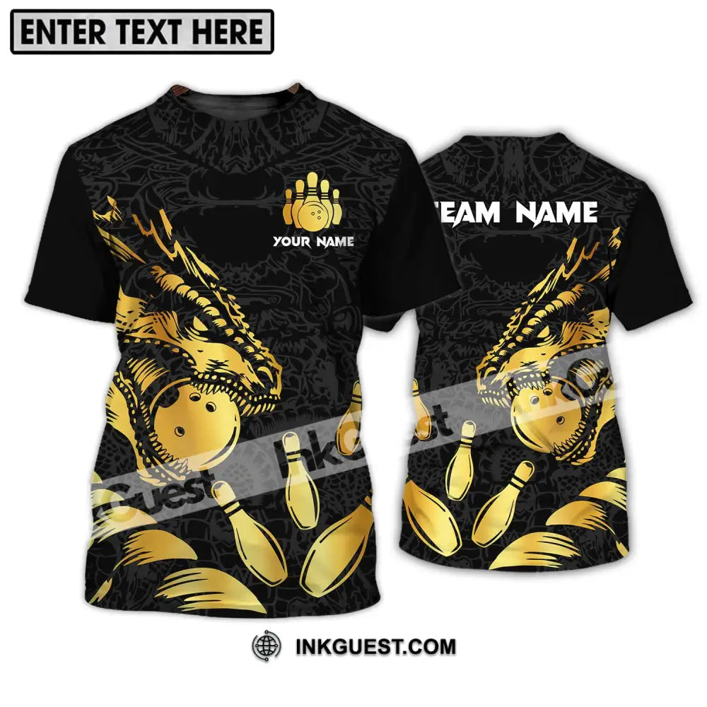 Unisex Shirt - Benutzerdefinierter Name und Teamname Bowling-Liebhaber-Shirt, Golden Bowling