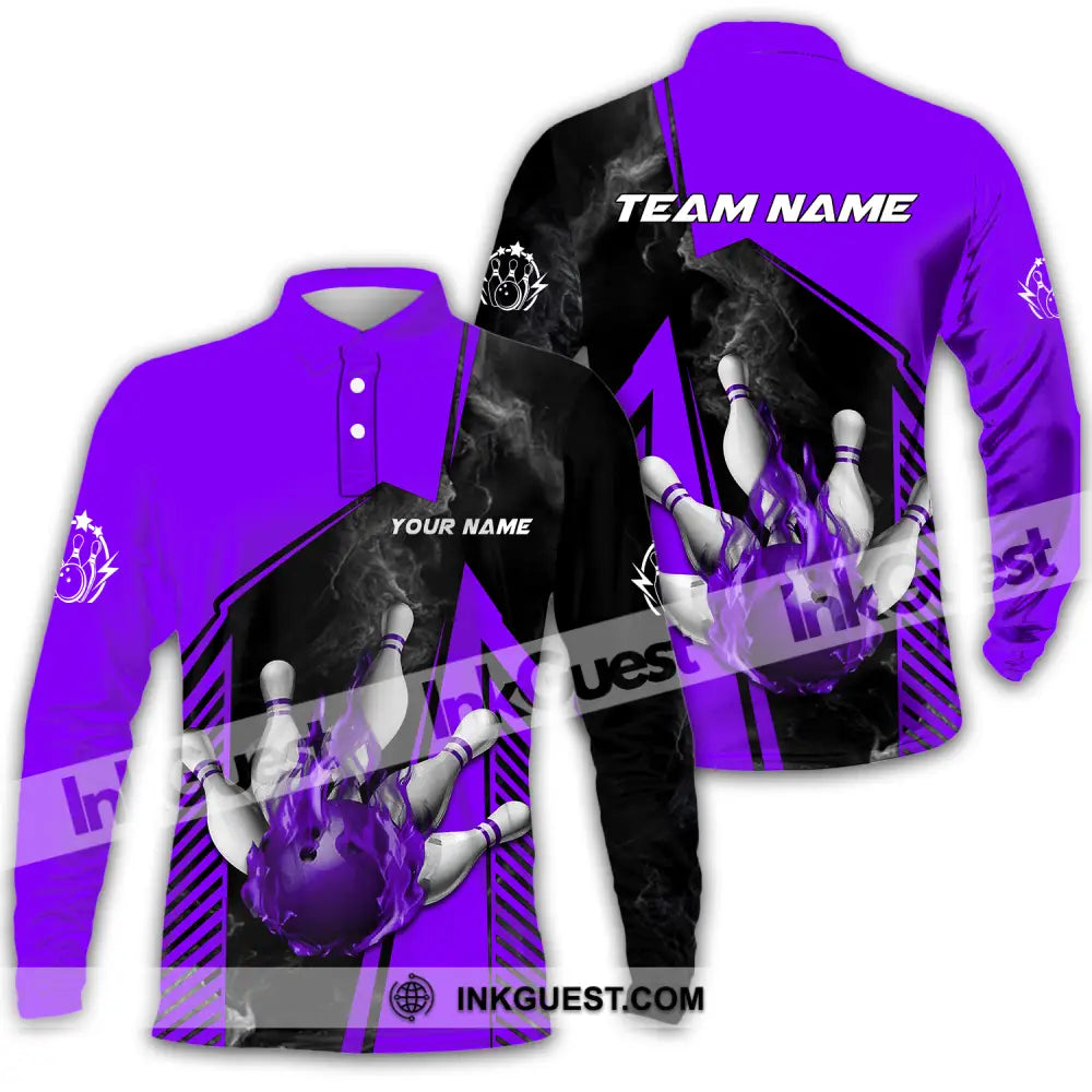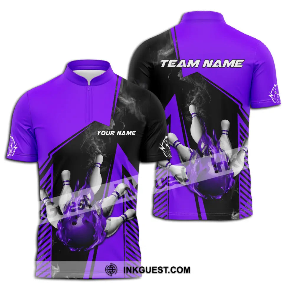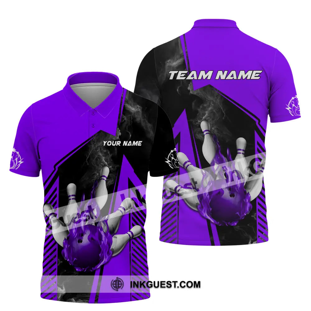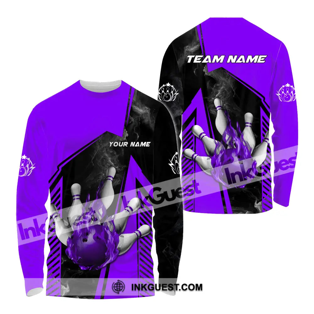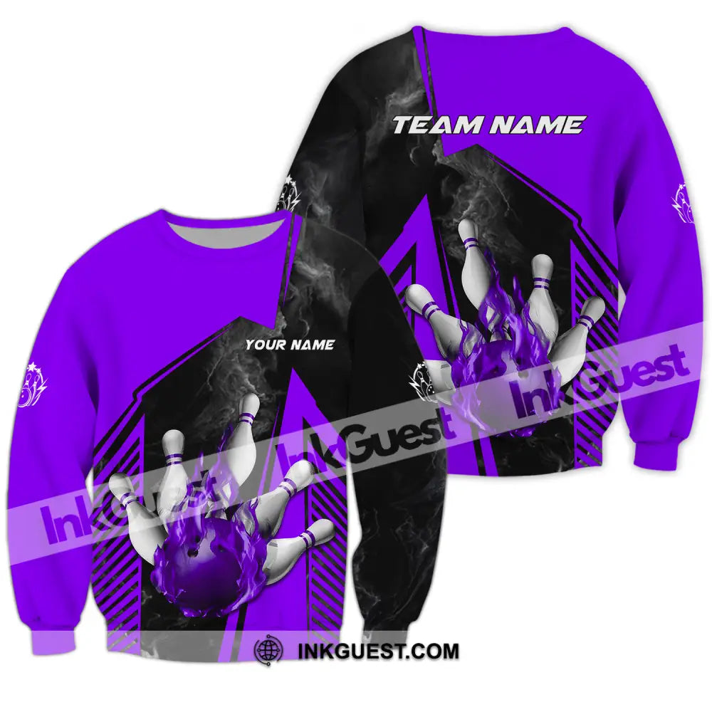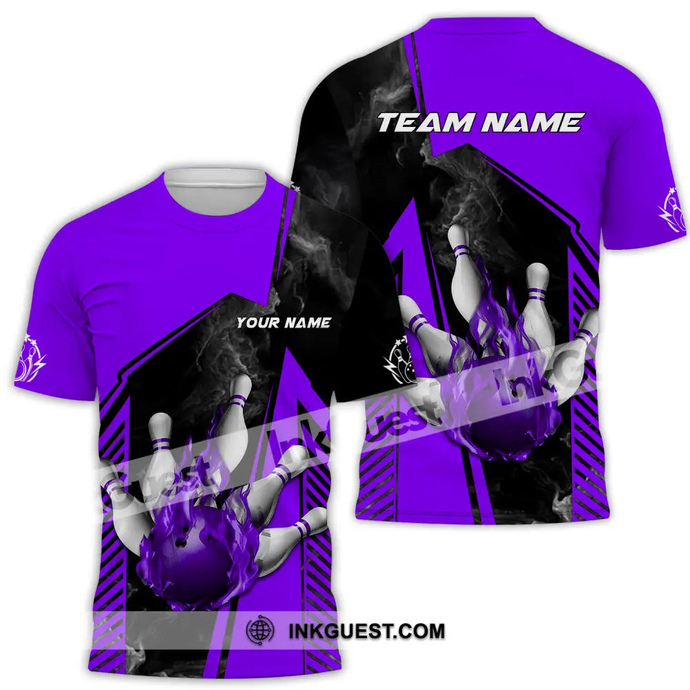 Unisex Shirt - Benutzerdefinierter Name und Teamname Bowling Sport Shirt, Lila Ball