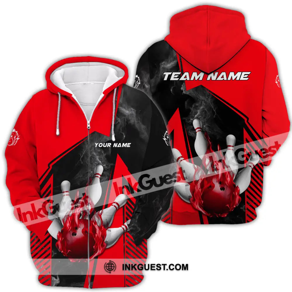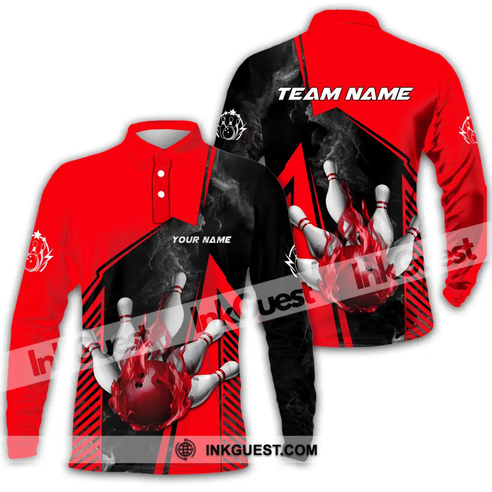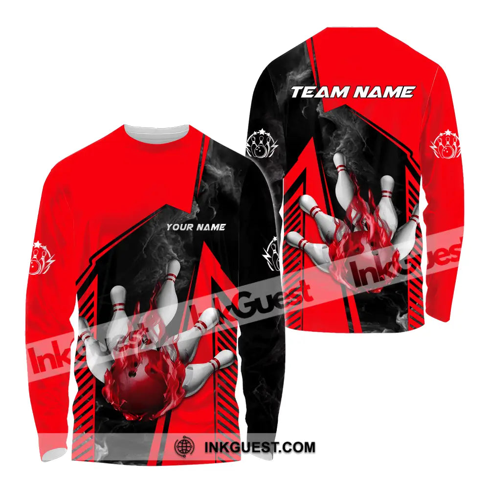 Unisex Shirt - Benutzerdefinierter Name und Teamname Bowling Sport Shirt, Red Ball