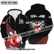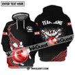 Unisex Shirt - Benutzerdefinierter Name und Teamname Shirt, Schwarz Rot Bowling Liebhaber Shirt