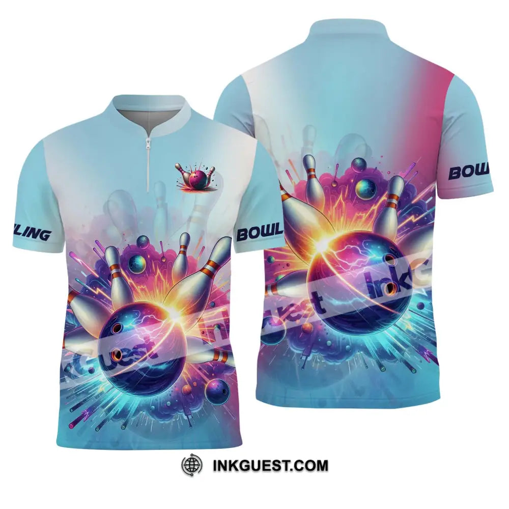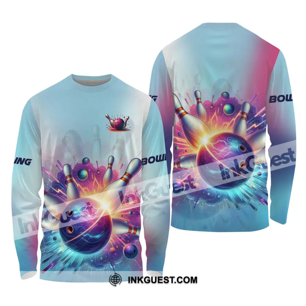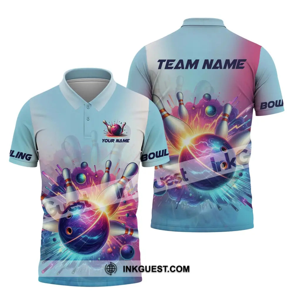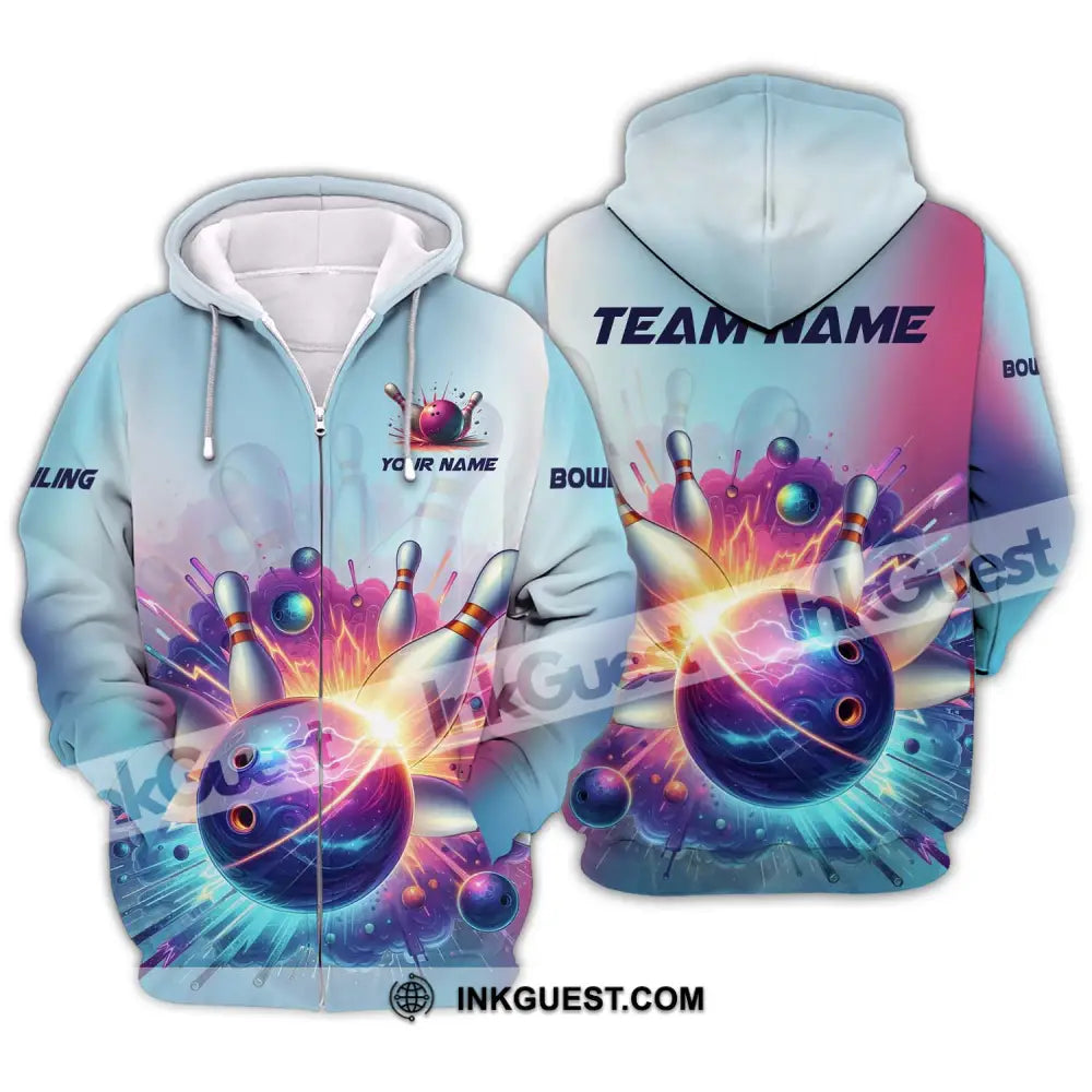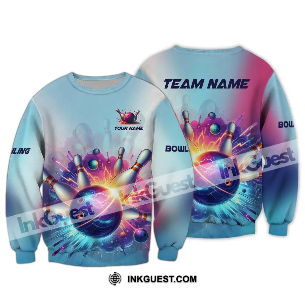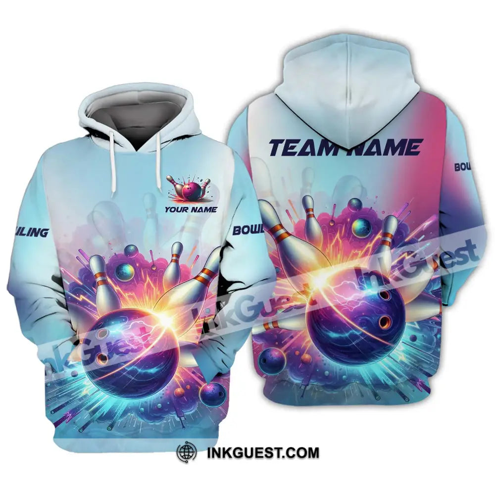 Unisex-Shirt - Benutzerdefiniertes Namens- und Teamnamen-Shirt, Boom Bowlingkugel und Pins
