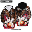 Unisex Shirt - Benutzerdefinierter Name und Teamname Shirt, Bowling Fire Ball und Pins Shirt
