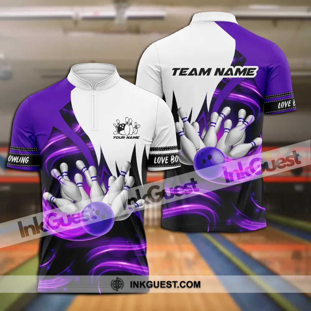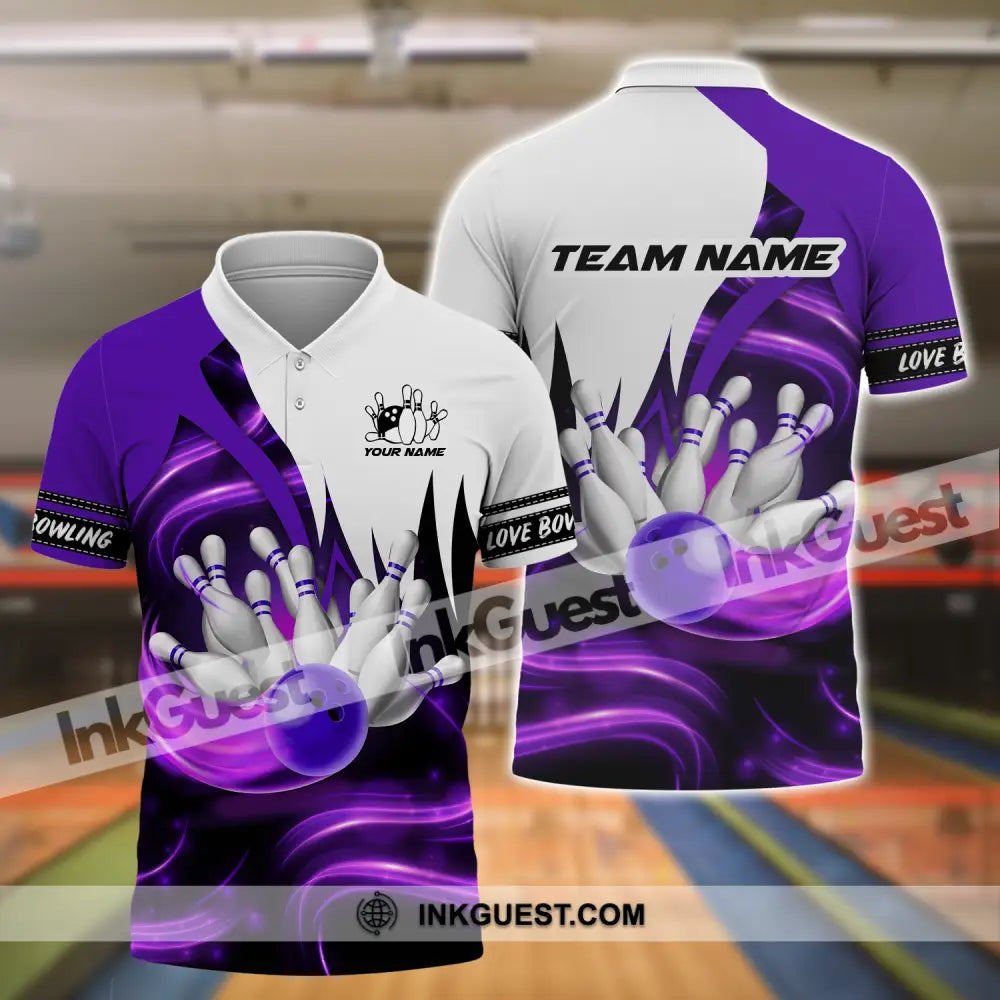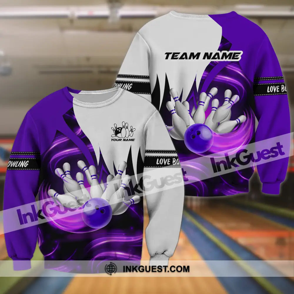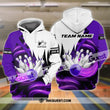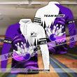 Unisex-Shirt - Benutzerdefiniertes Namens- und Teamnamen-Shirt, Bowling-Motive in Lila