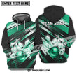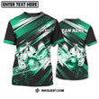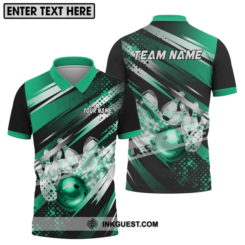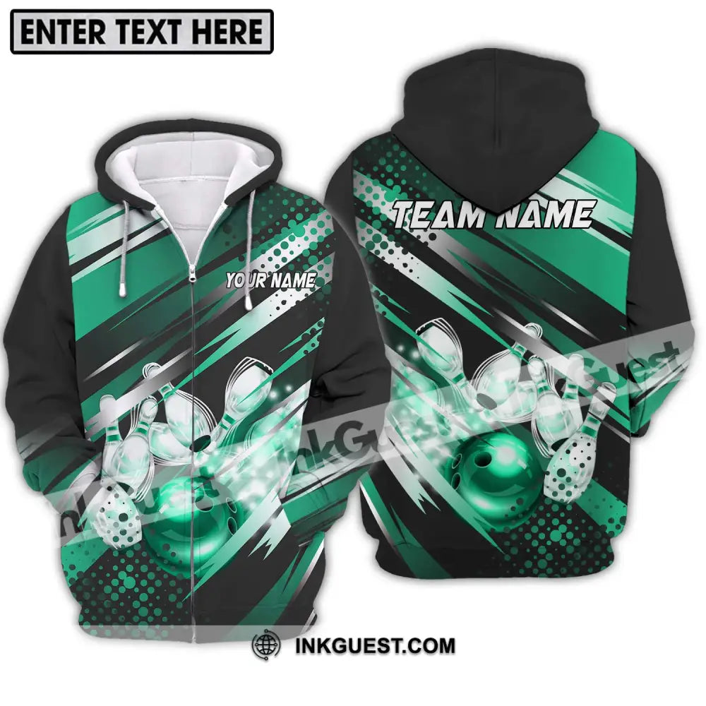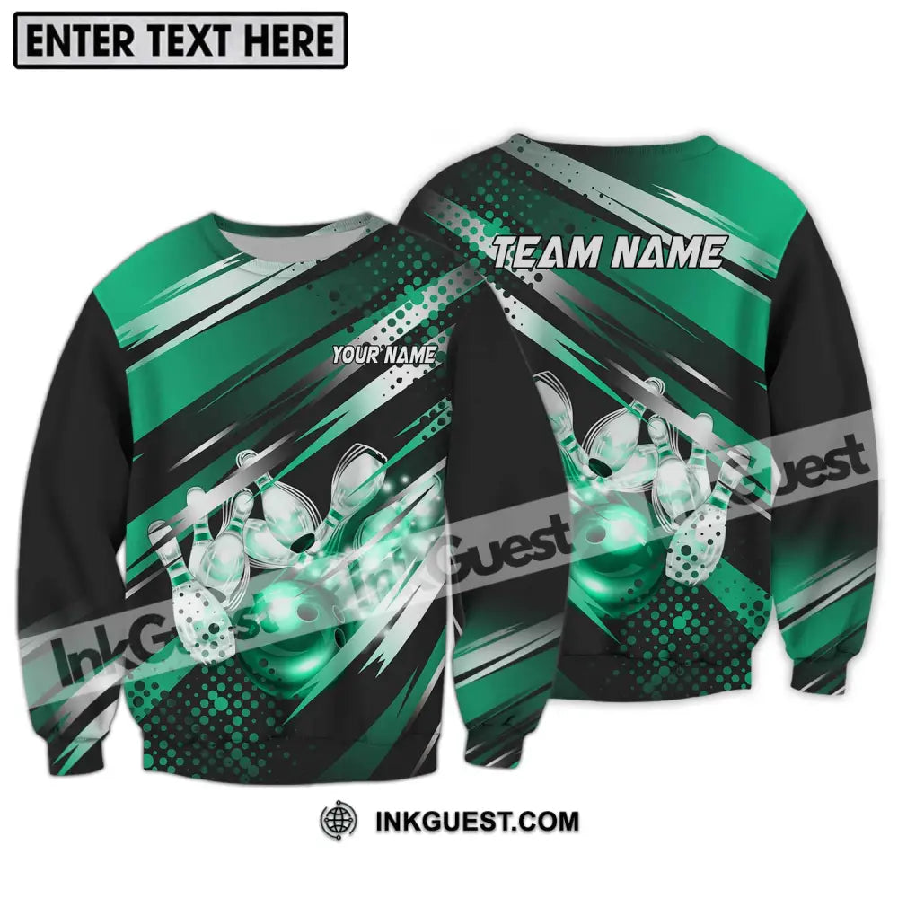 Unisex-Shirt - Benutzerdefiniertes Namens- und Teamnamen-Shirt, Smaragdgrüne Bowlingkugel und Pins