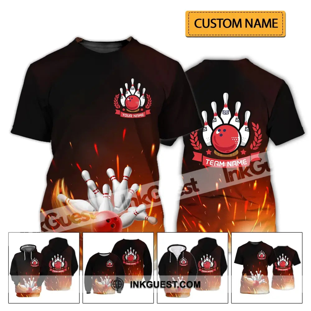 Unisex-Shirt – Benutzerdefinierter Name und Teamname – Fire Bowling Balls
