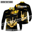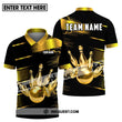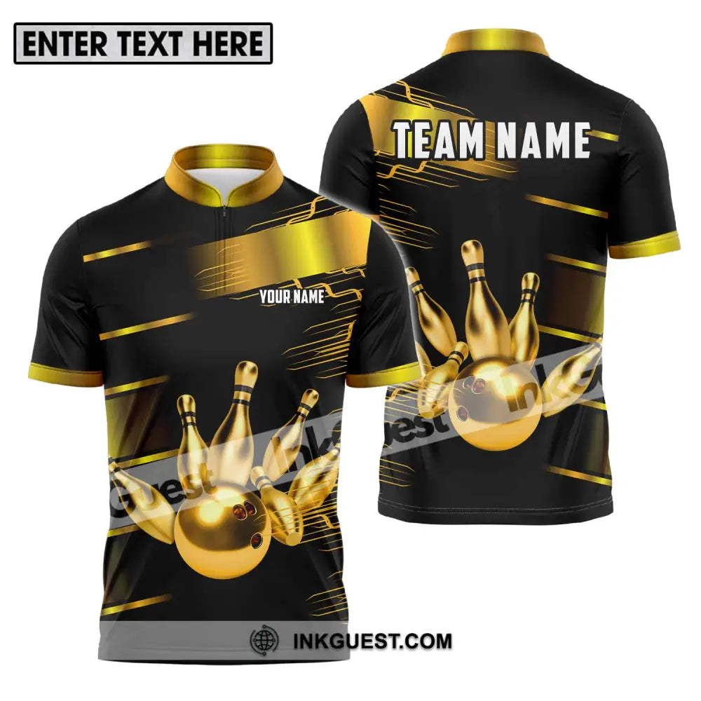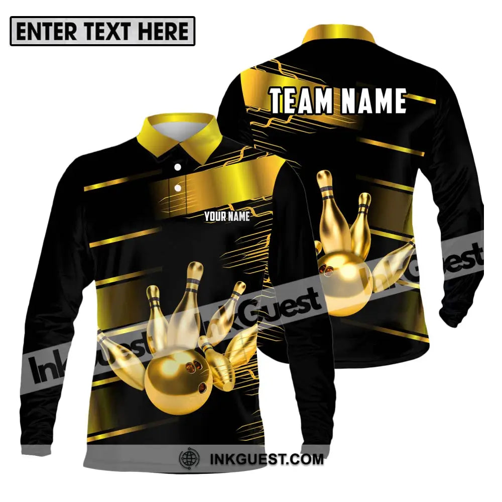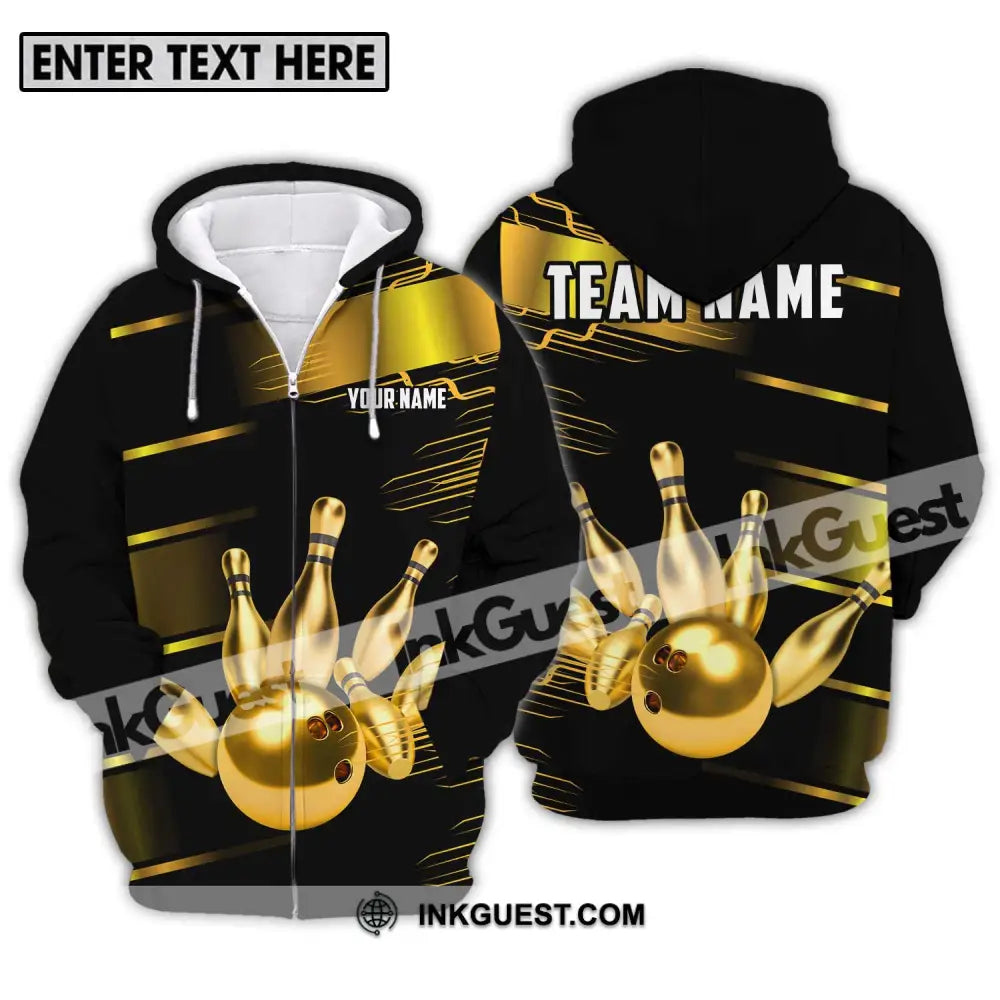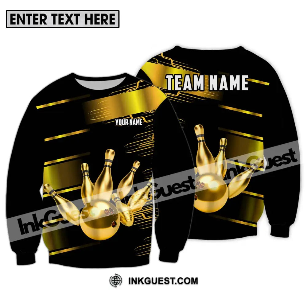 Unisex-Shirt – Sport-Shirt mit individuellem Namen und Teamnamen, goldene Bowlingkugel und Pins