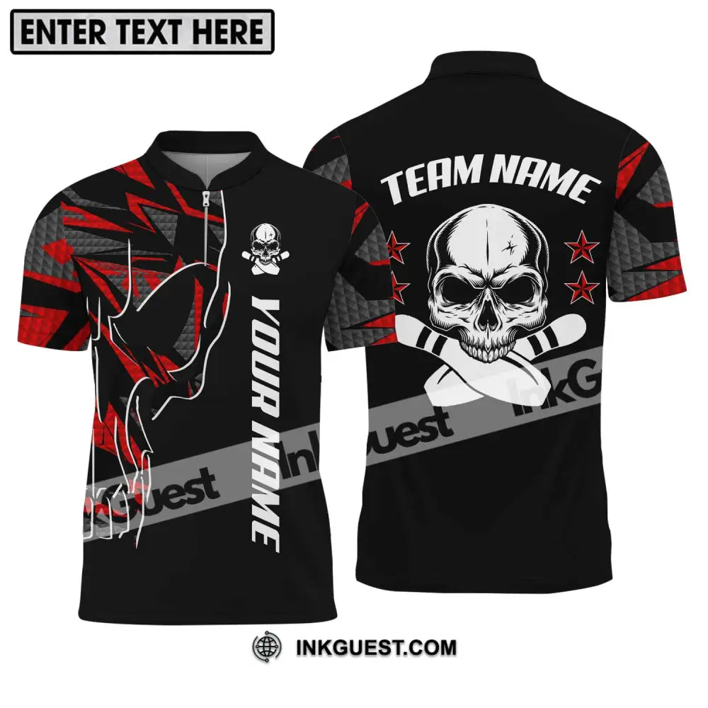 Unisex Shirt - Bowlingshirt mit individuellem Namen und Teamnamen, Totenkopf und Pins