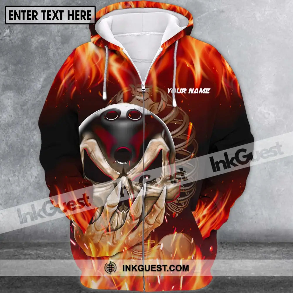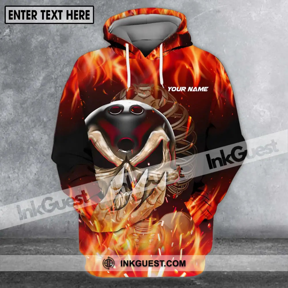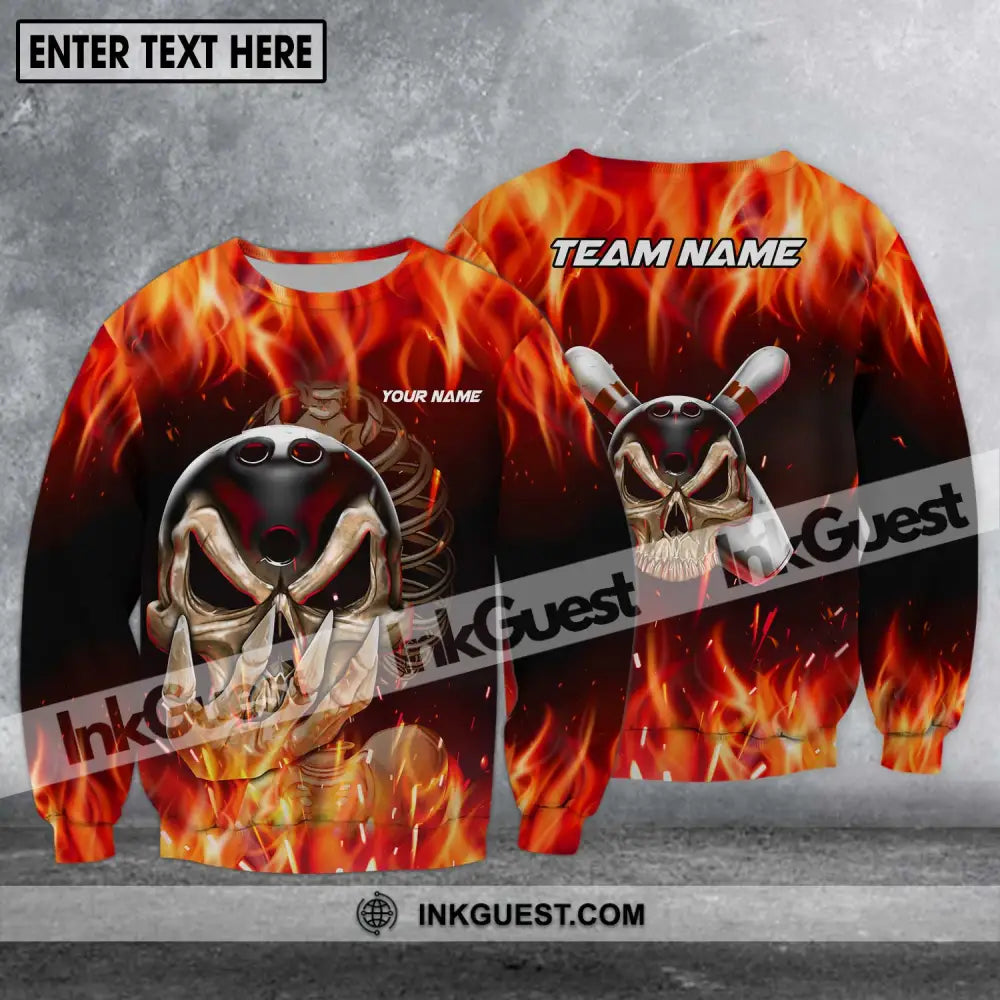 Unisex Shirt - Benutzerdefinierter Name und Teamname Shirt - Skull Fire Bowling - Shirt für Bowling-Liebhaber
