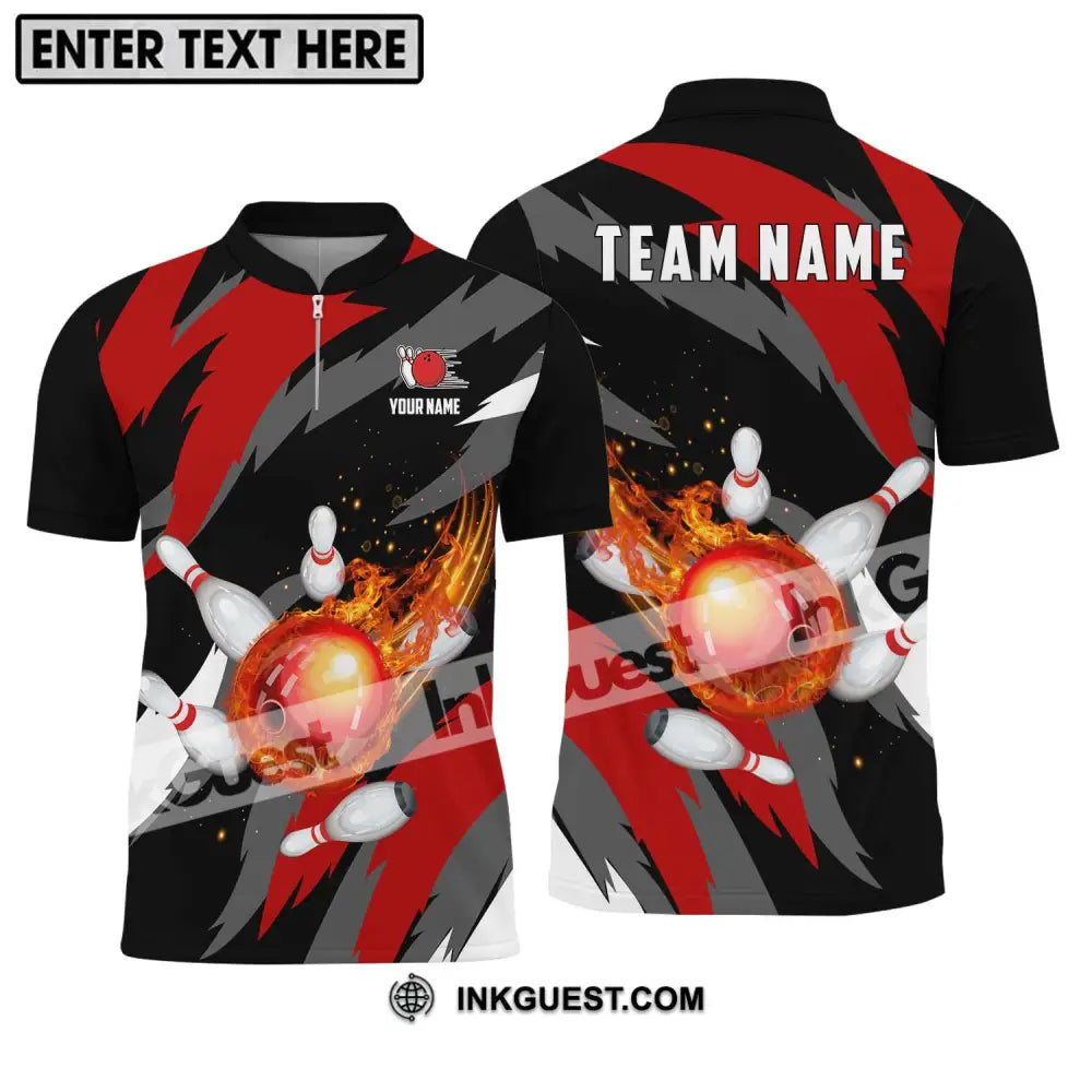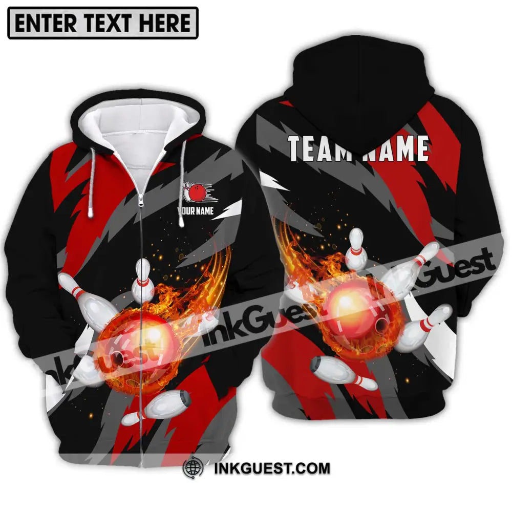 Unisex Shirt - Benutzerdefinierter Name und Teamname Bowling Liebhaber Shirt, Feuer Bowling Ball