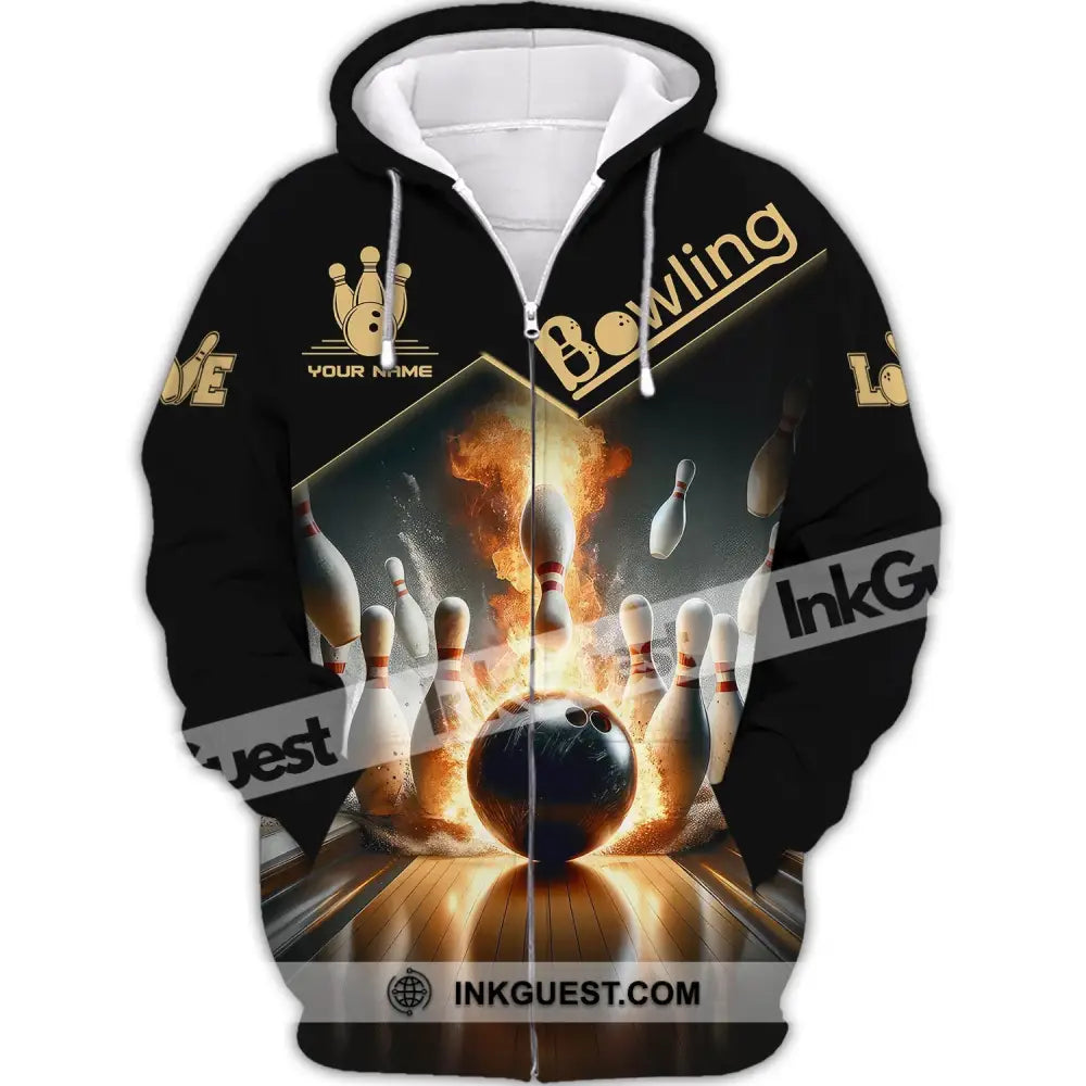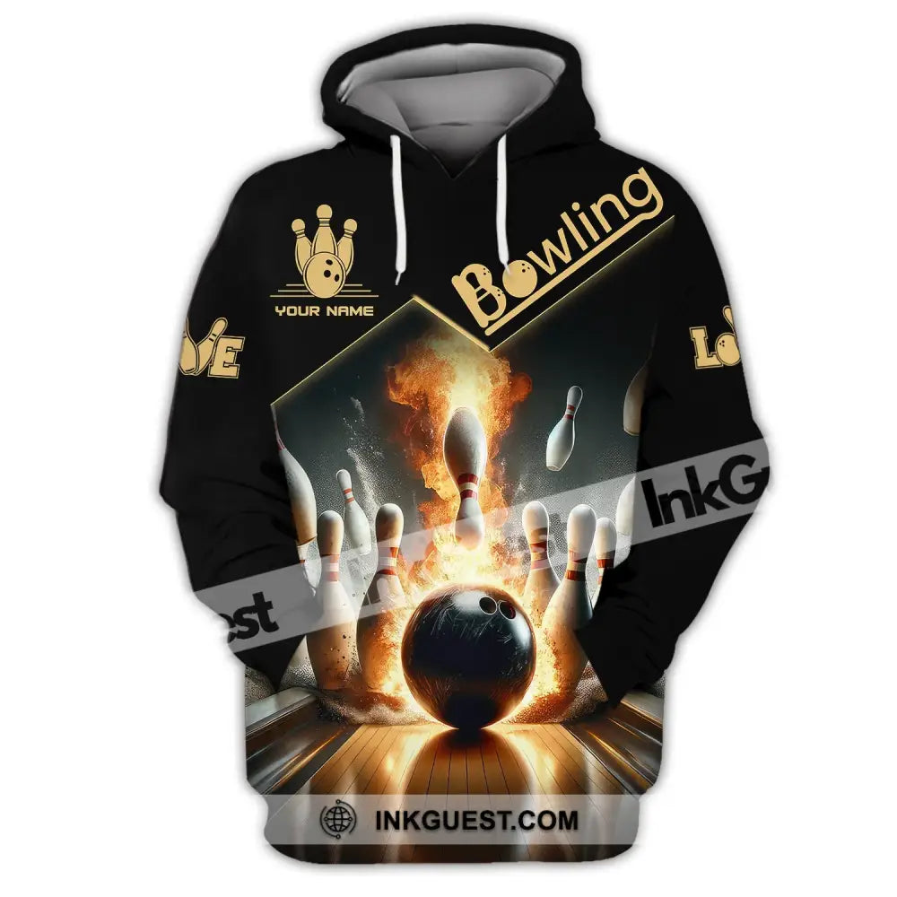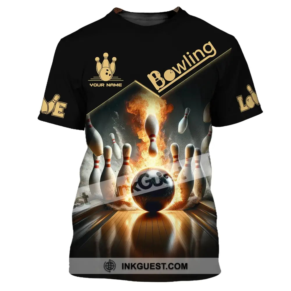 Unisex Shirt - Benutzerdefinierter Name Boxen, Feuer Bowling Ball Shirt für Bowling-Liebhaber