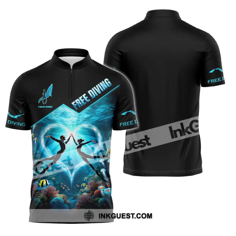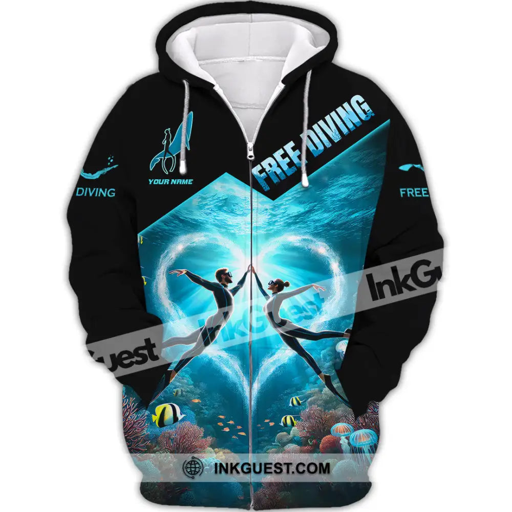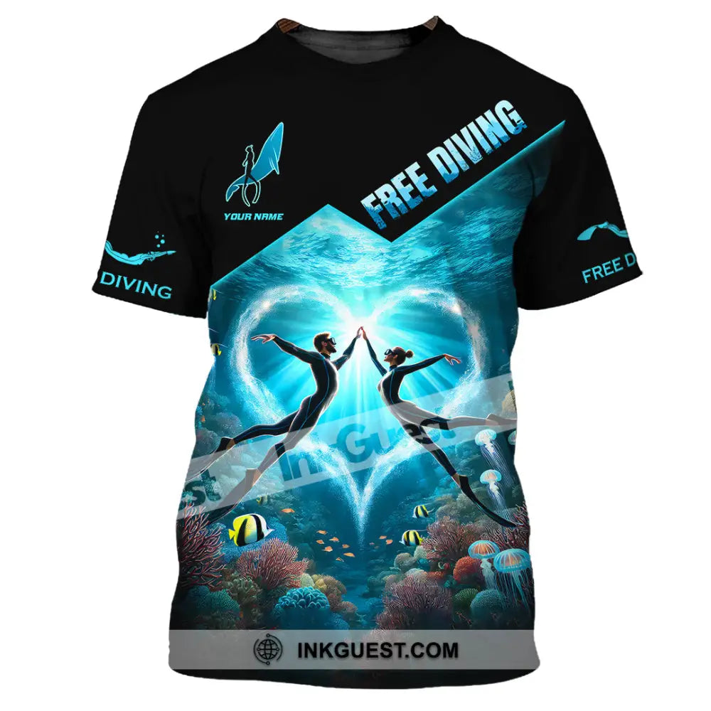 Unisex Shirt, Custom Name Free Diving Shirt, Diving Gift