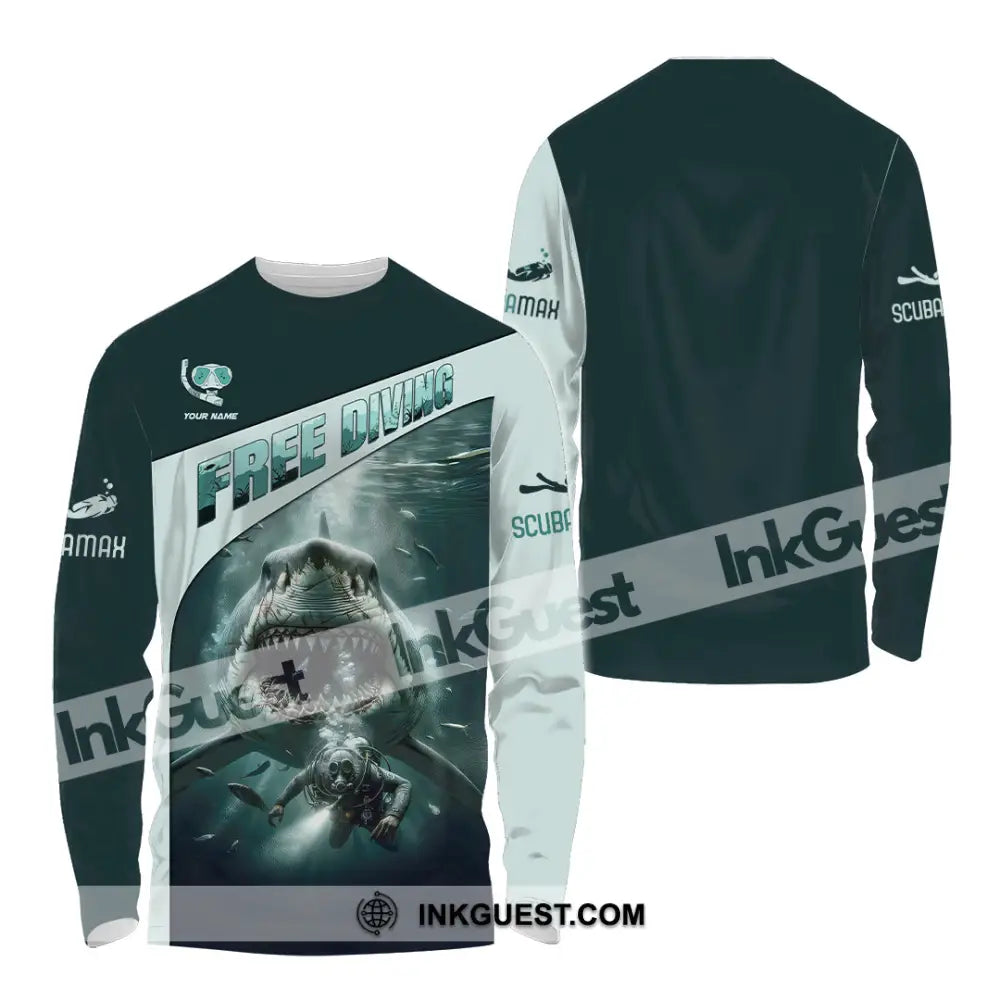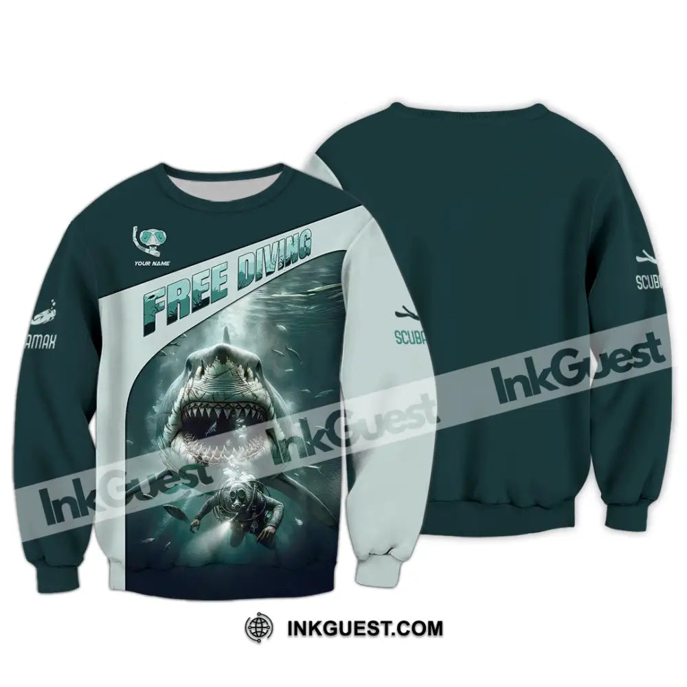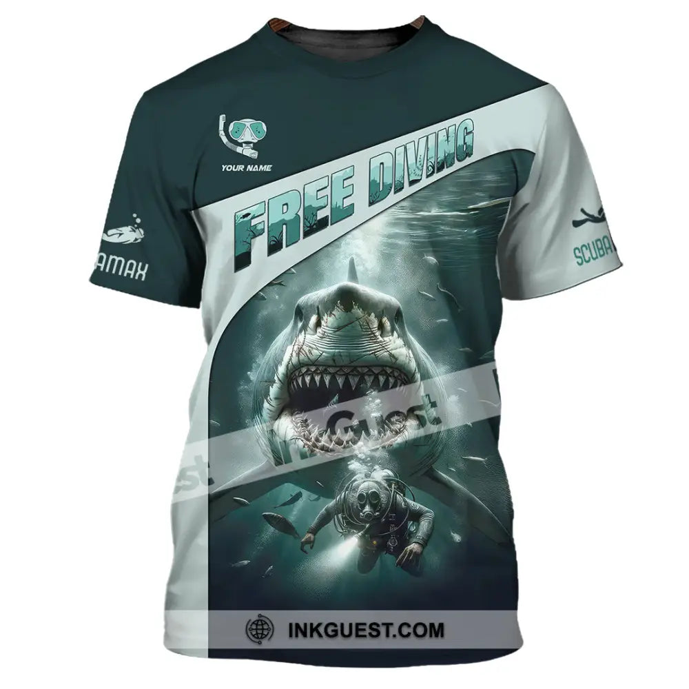 Unisex Shirt, Custom Name Free Diving Shirt, Diving Gift