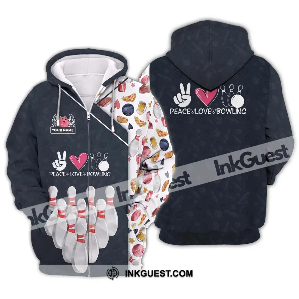 Unisex Shirt - Benutzerdefiniertes Namensshirt, Peace Love Bowling Shirt