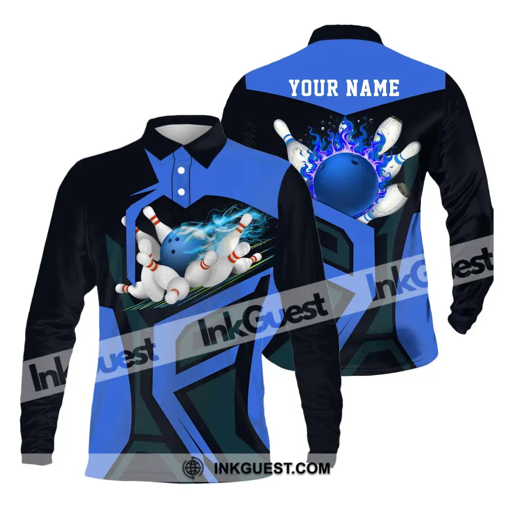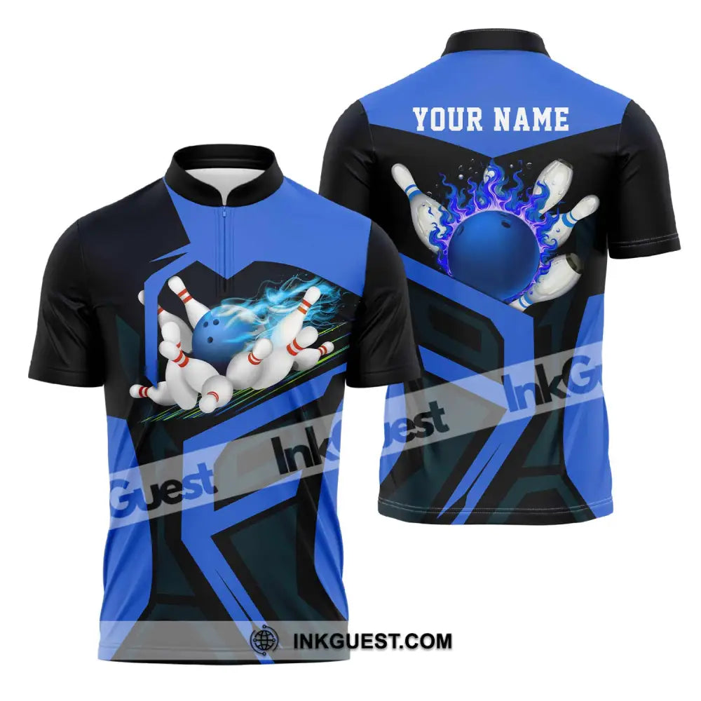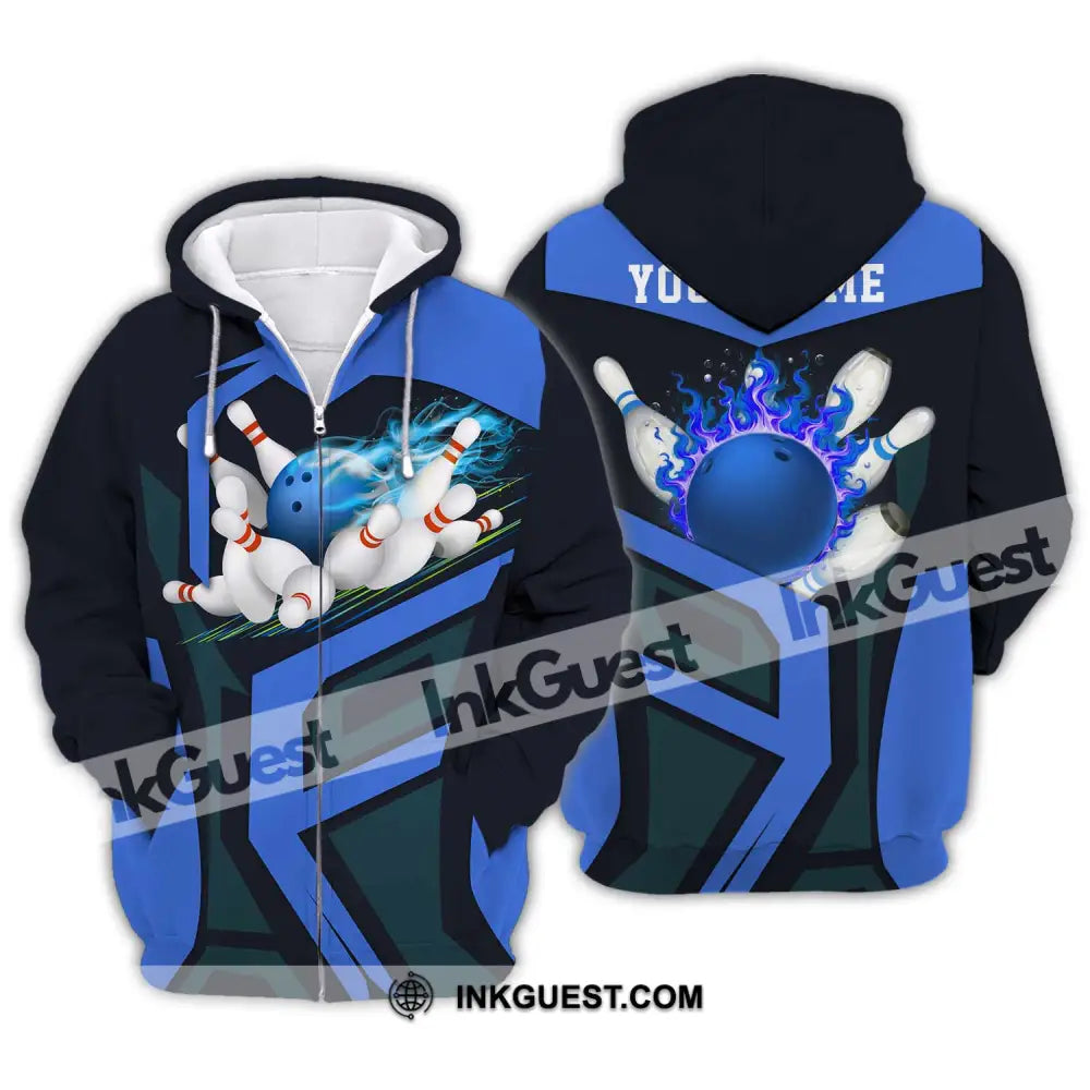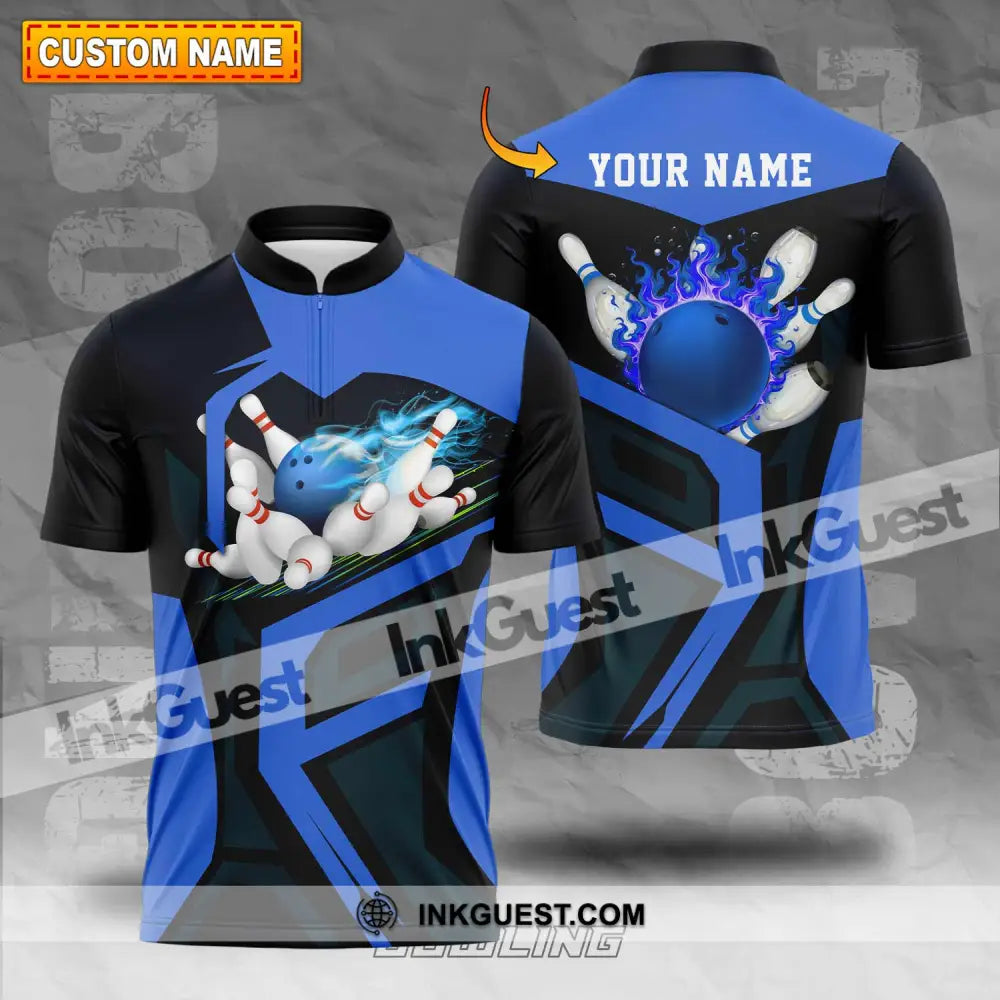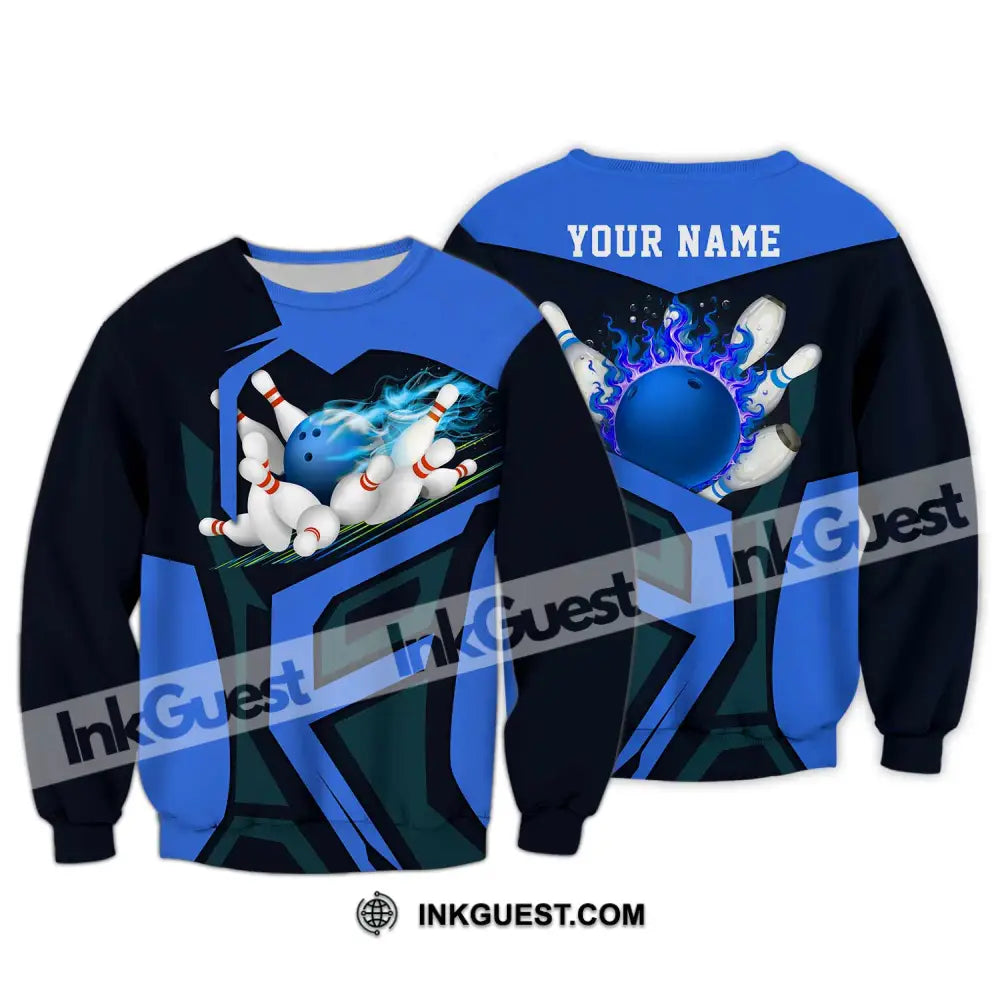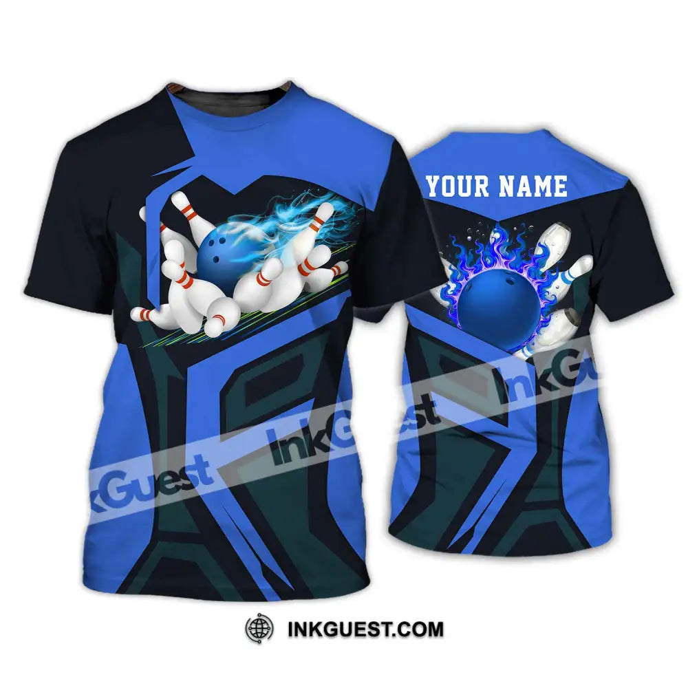 Unisex Shirt - Custom Text Blue Bowling Player Sport Shirt