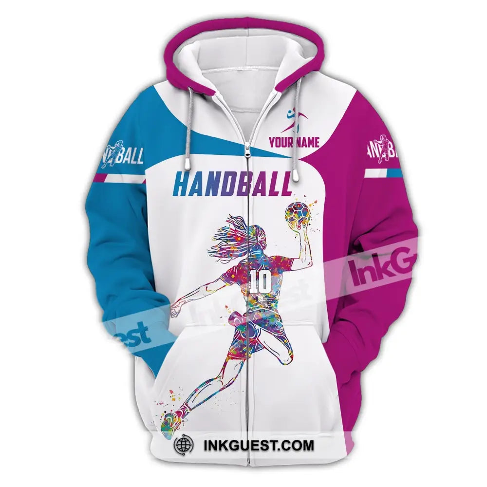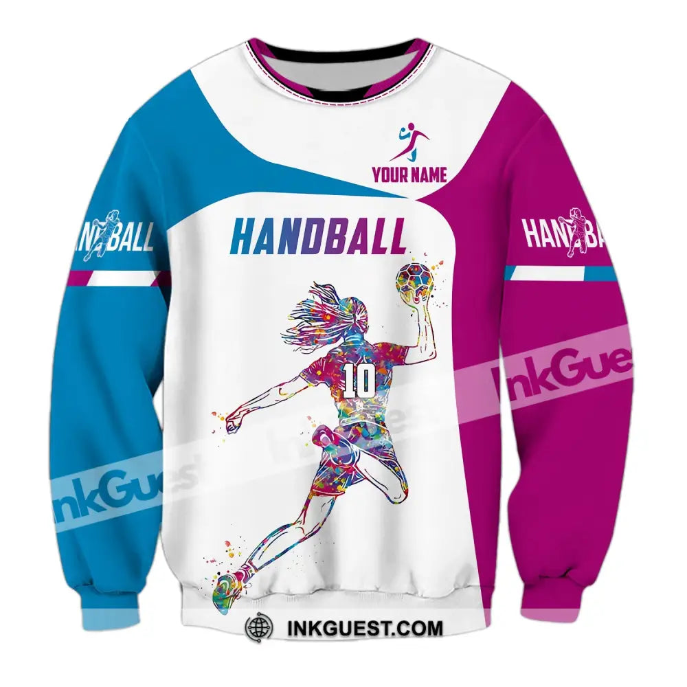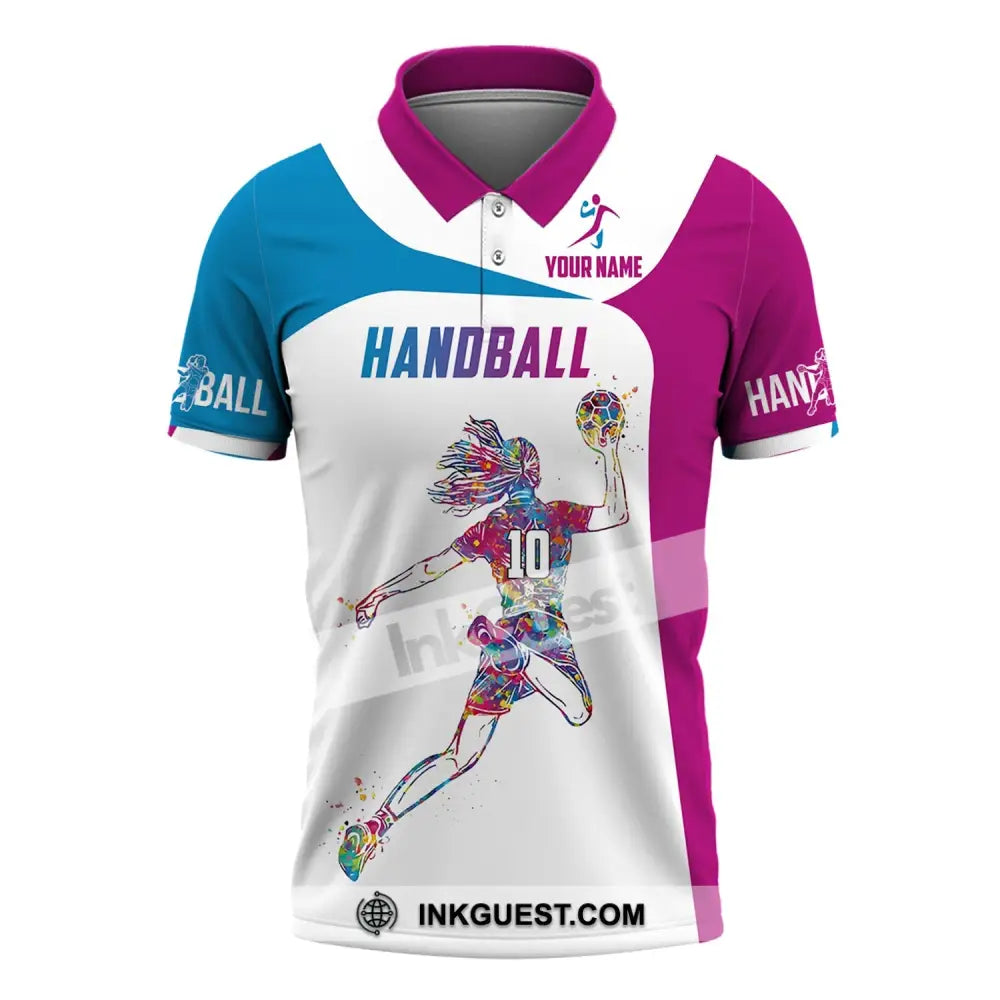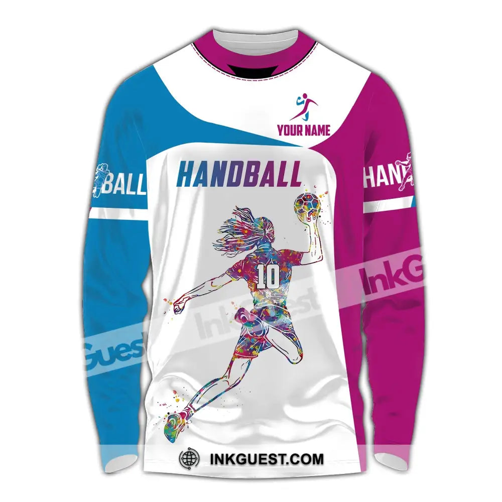 Woman Shirt, Custom Name and Number Handball Shirt, Handball Polo Long Sleeve, Handball Club Uniform, Handball Lover Gift