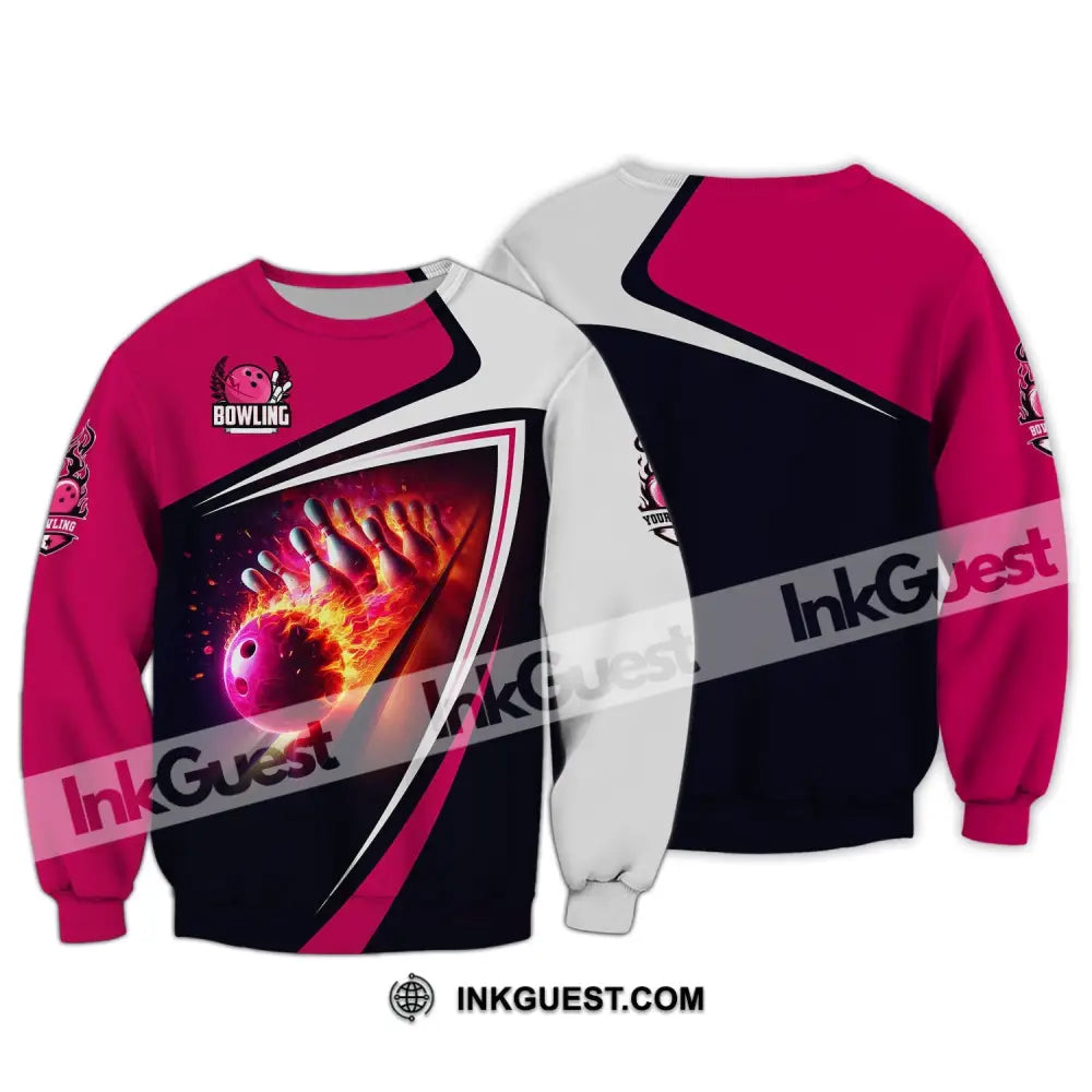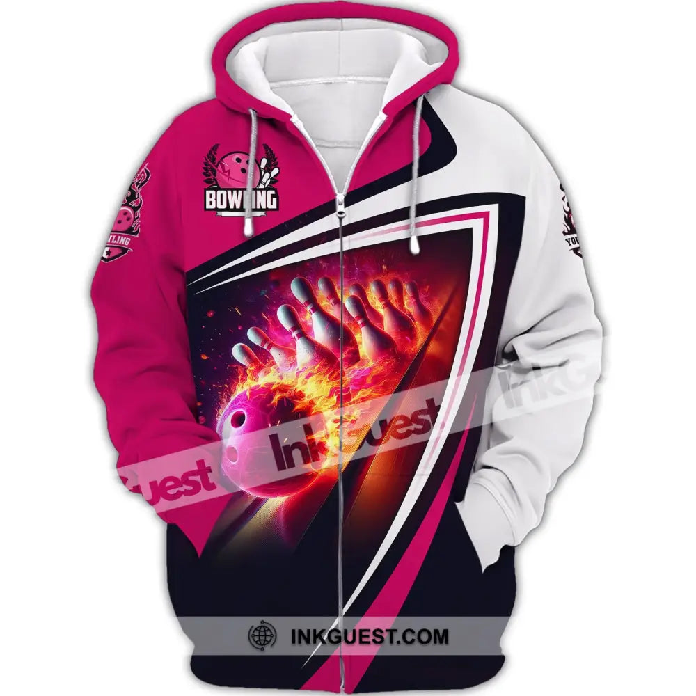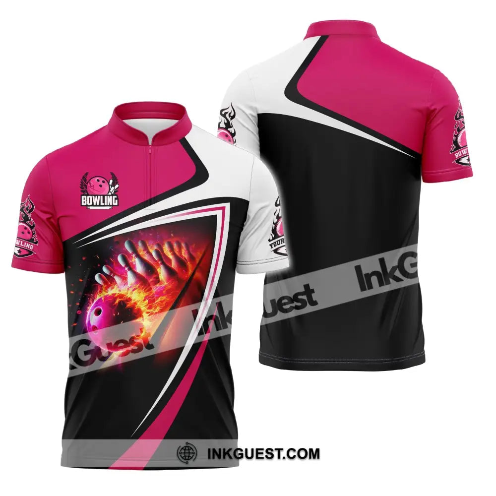 Damen Shirt, Bowling Zip Poloshirt mit individuellem Namen, Shirt für Bowlingspieler, Bowling T-Shirt
