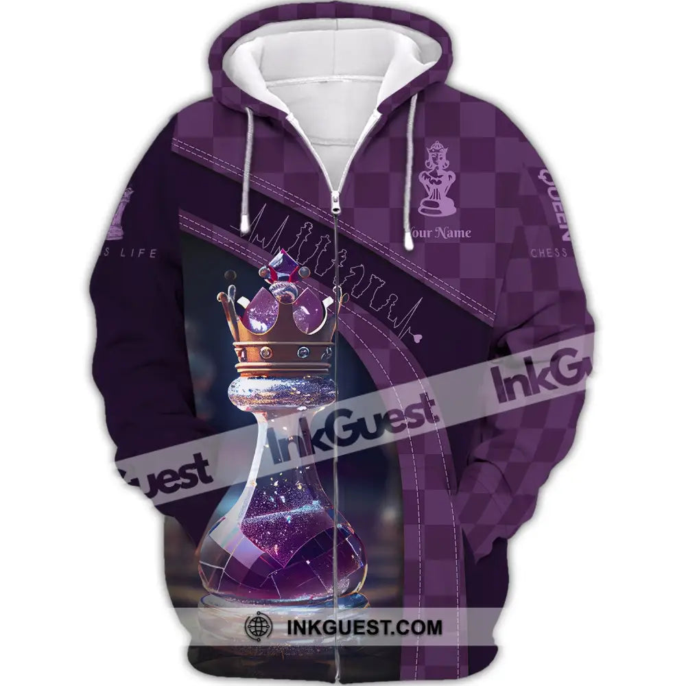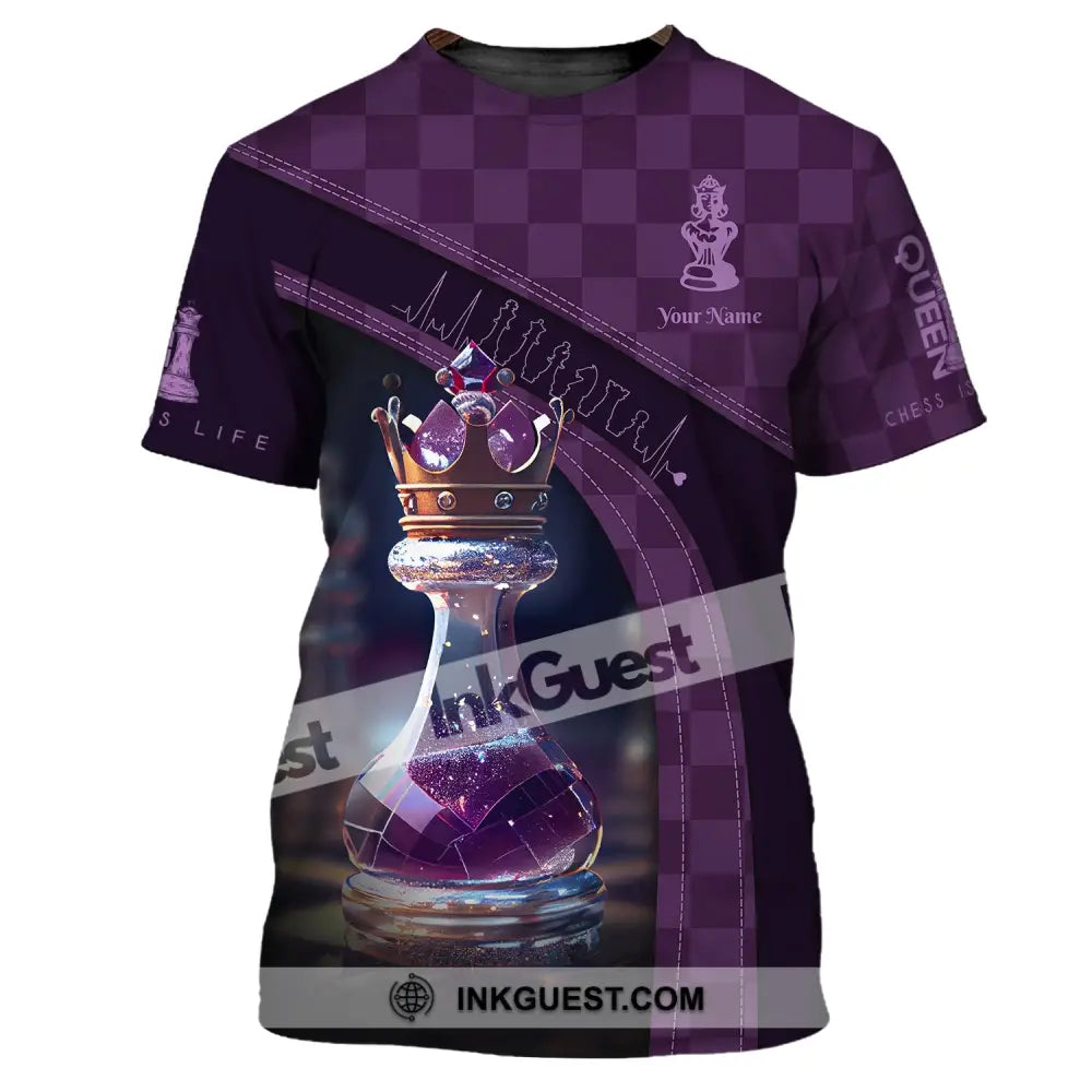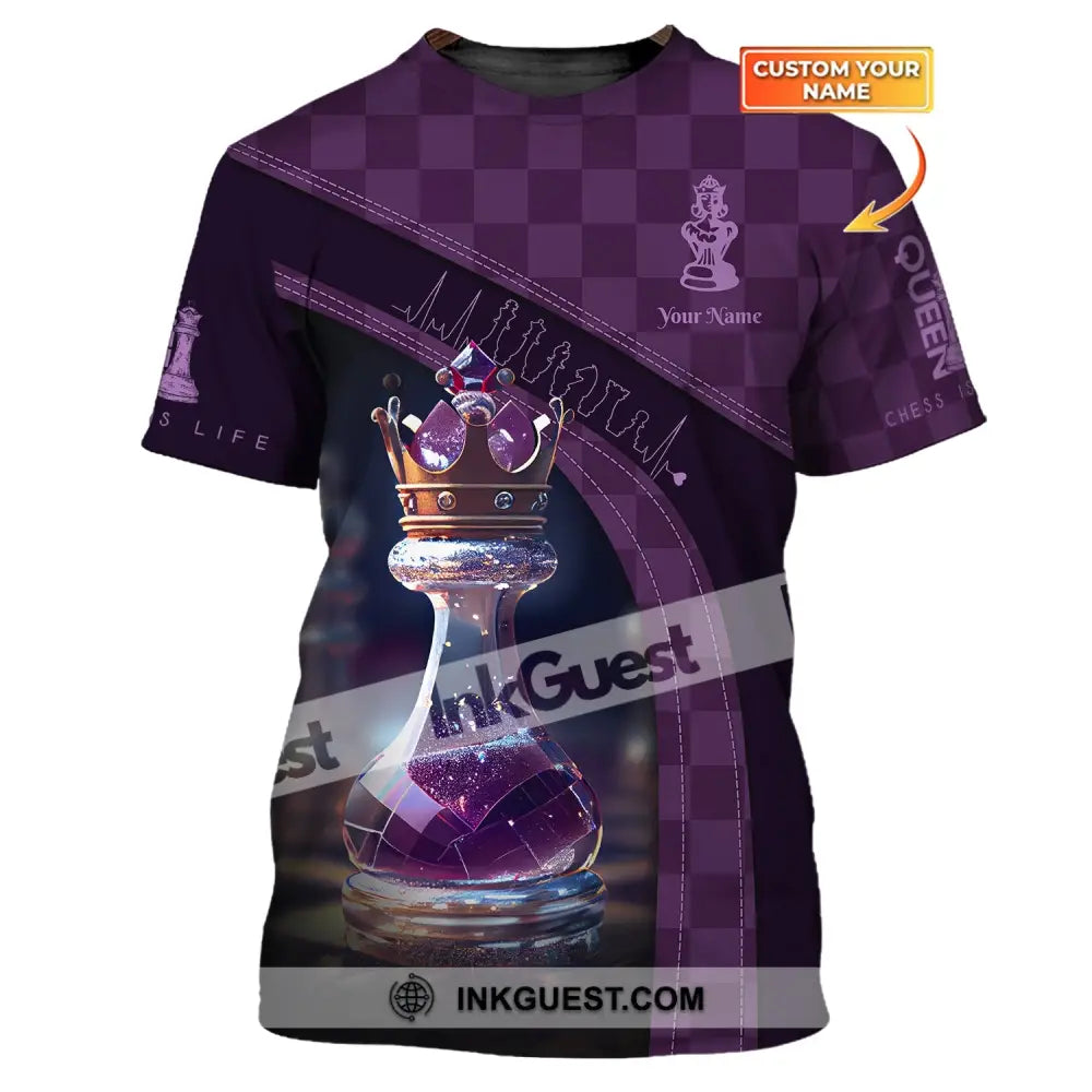 Damen-Shirt, Schach-T-Shirt mit individuellem Namen, Schachkönigin-Shirt, Geschenk für Schachliebhaber