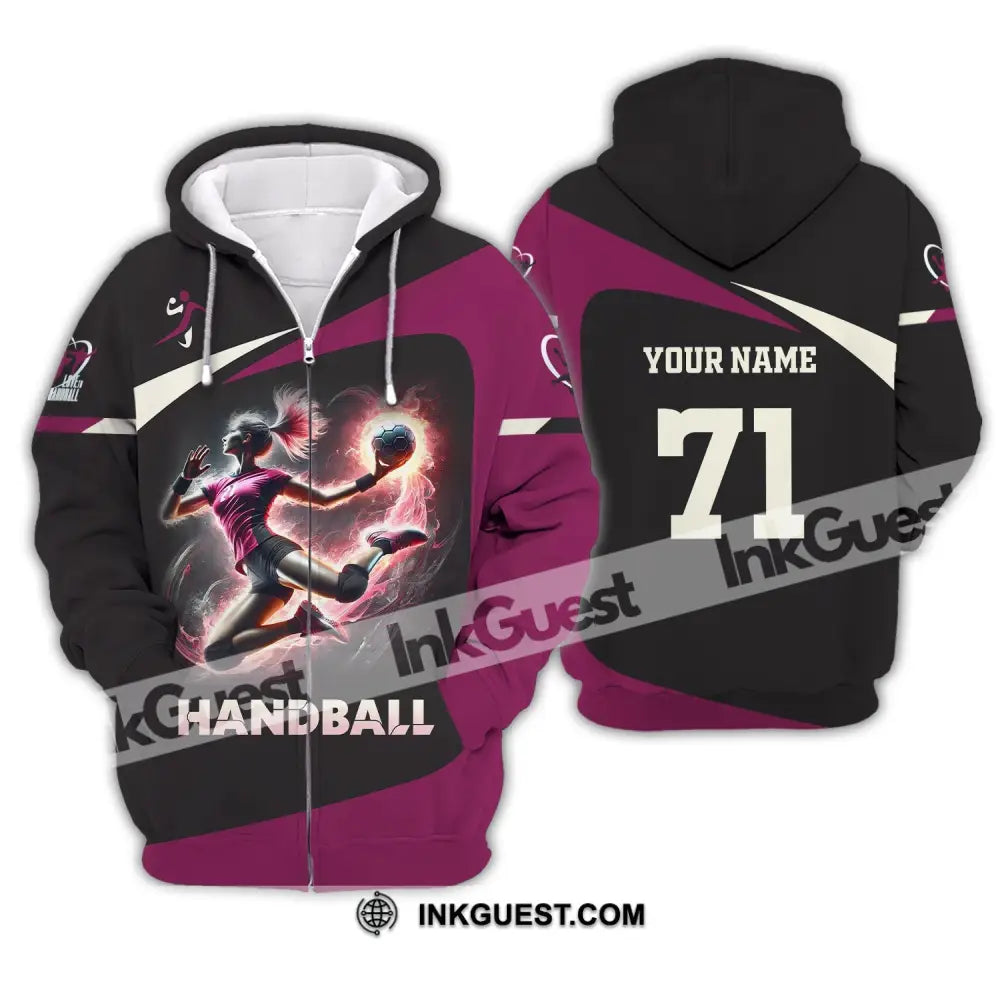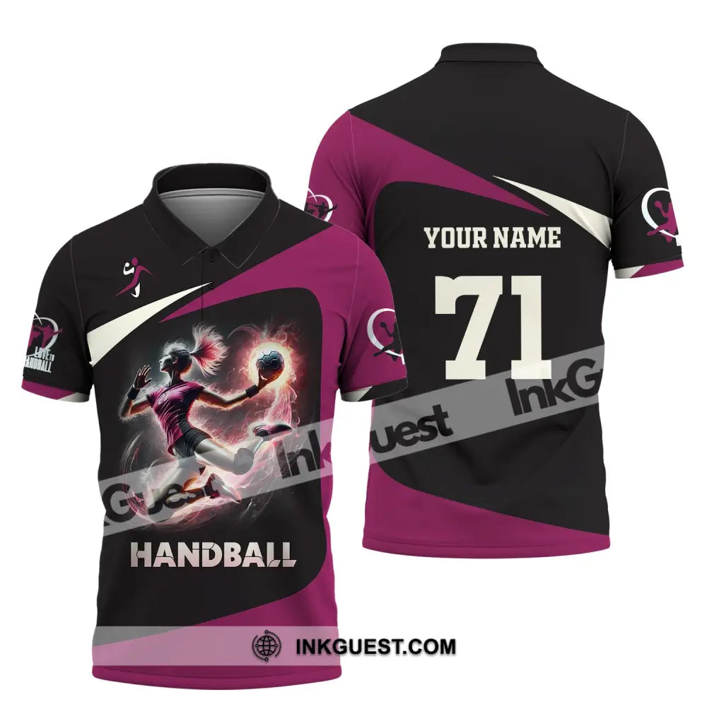 Woman Shirt, Custom Name Handball Shirt, Handball Polo Long Sleeve, Handball Lover T-Shirt