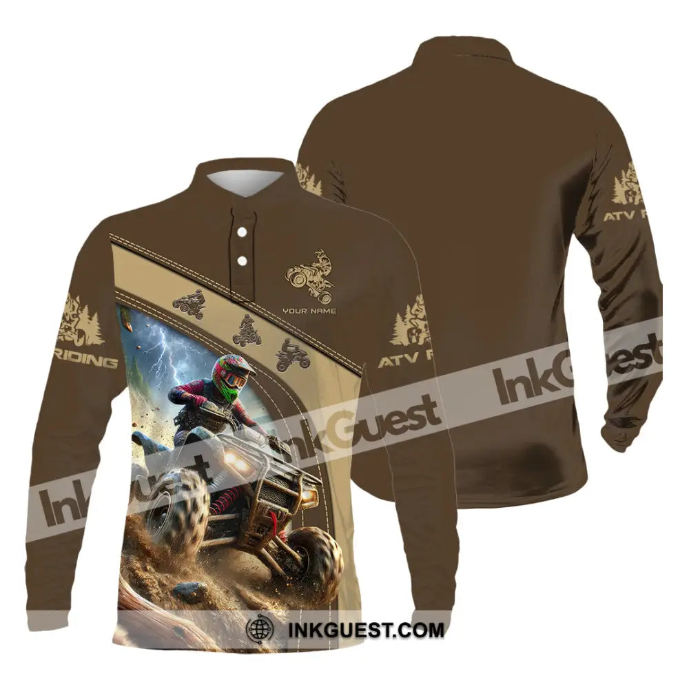 Man Shirt, Custom Name ATV Riding Shirt, ATV Riding Gift, ATV Riding Polo Shirt Long Sleeve Hoodie