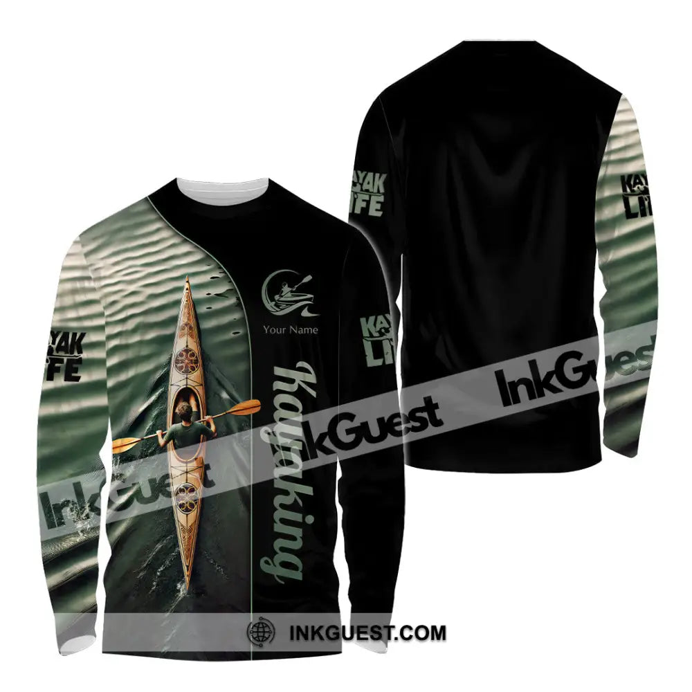 Man Shirt, Custom Name Kayaking Shirt, Kayaking Polo Long Sleeve, Kayaking Love T-Shirt