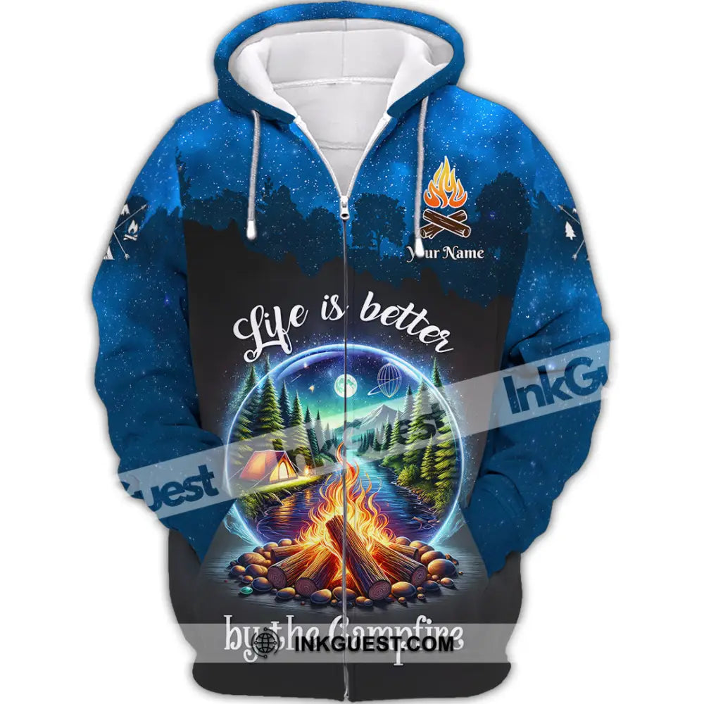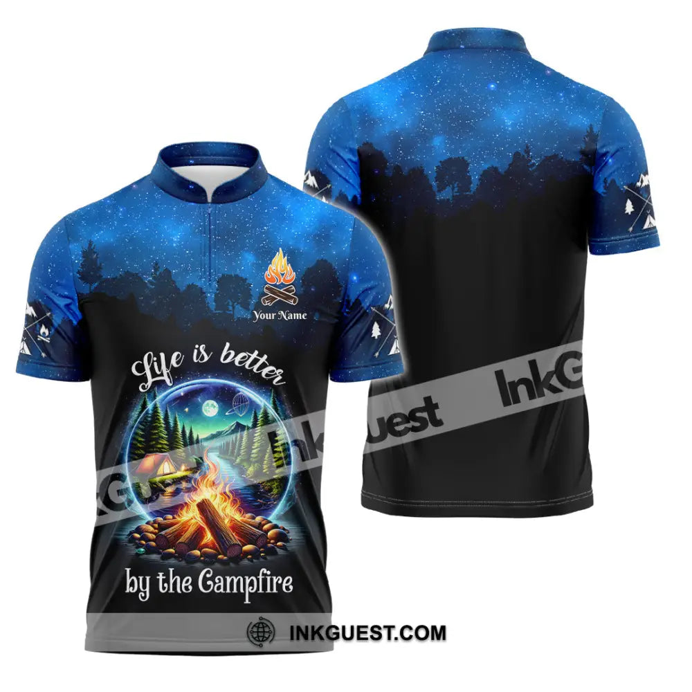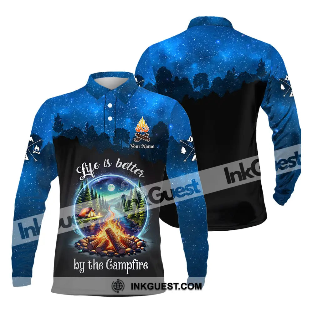 Unisex Shirt, Custom Name Camping Shirt, Camping Polo Long Sleeve, Campfire T-Shirt