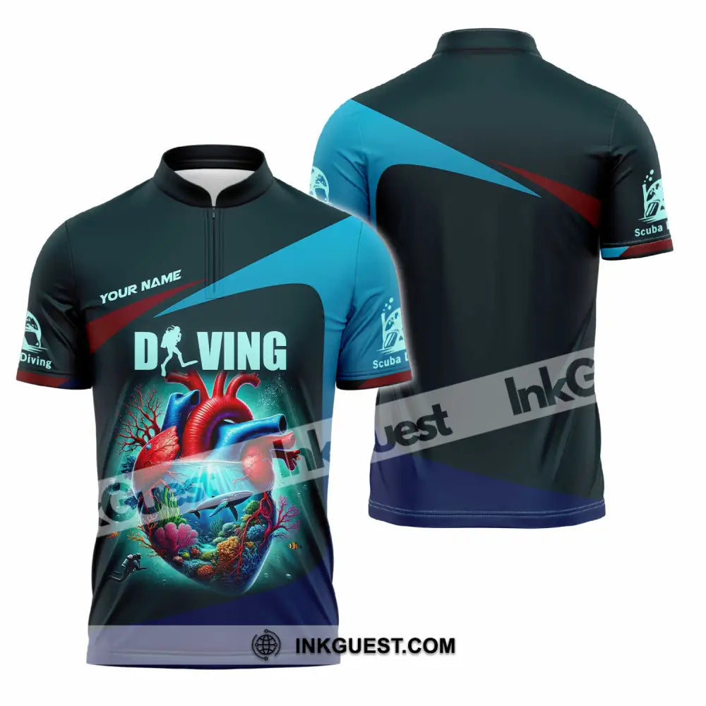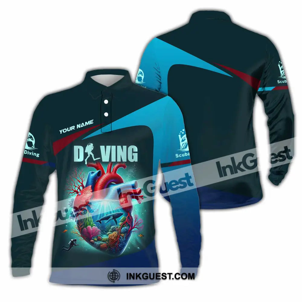 Unisex Shirt, Custom Name Diving Shirt, Diving Polo Long Sleeve Shirt