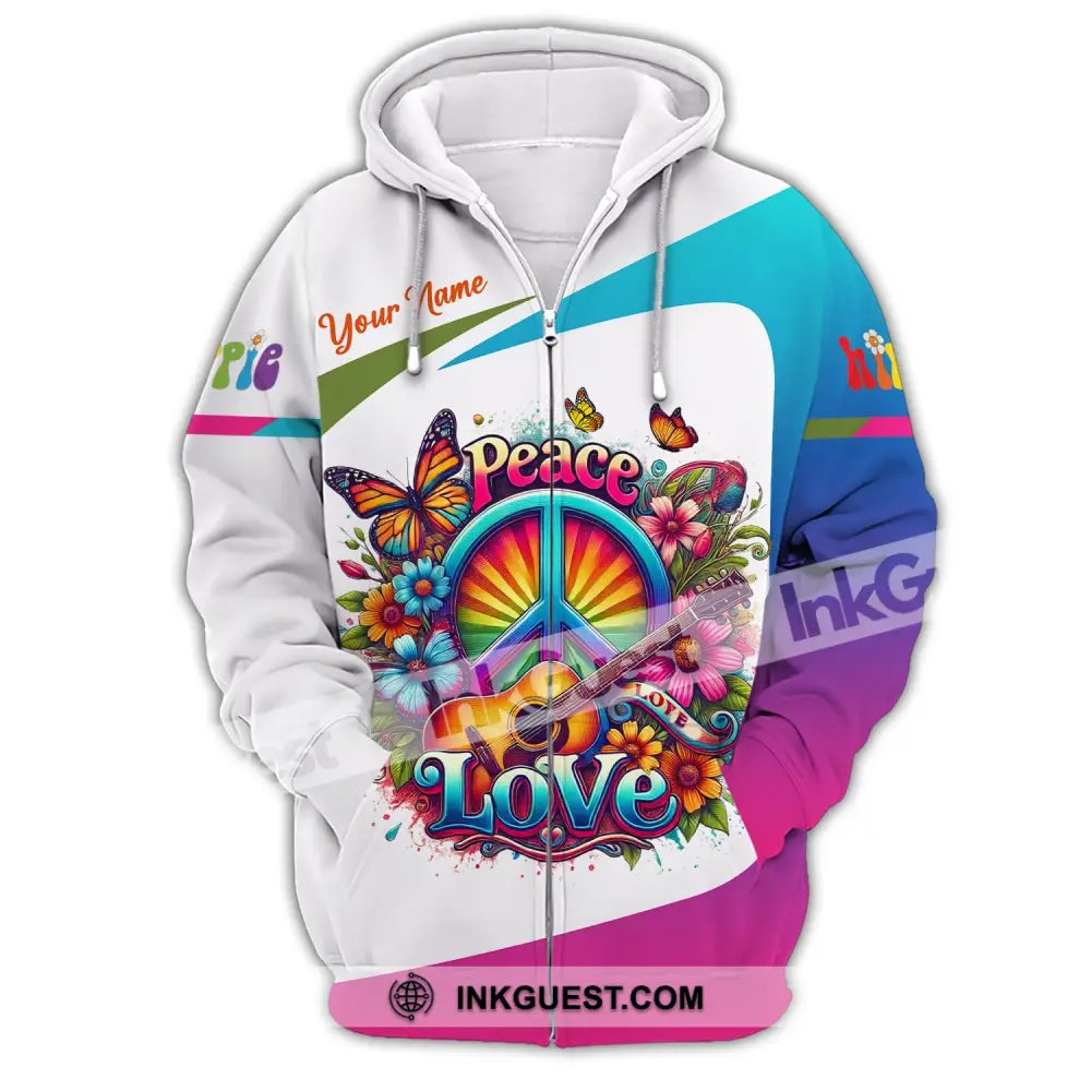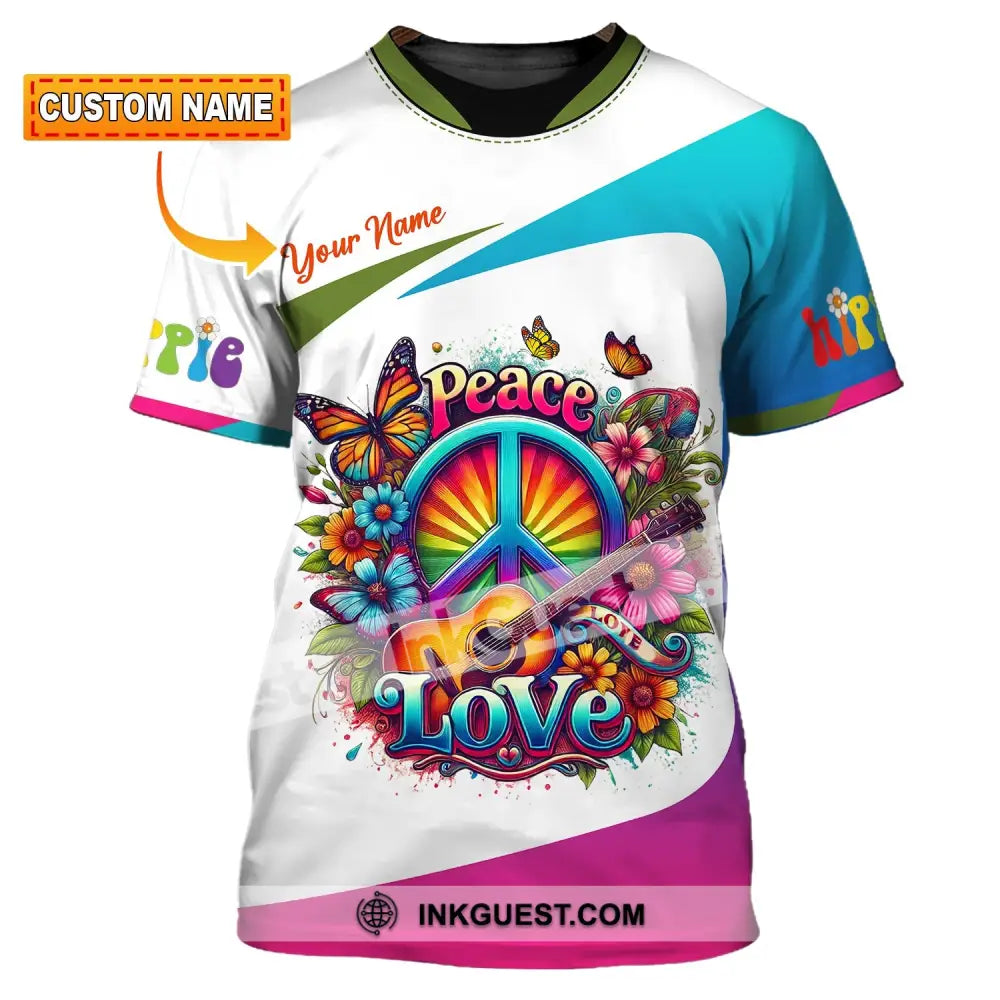 Unisex Shirt, Custom Name Hippie T-Shirt, Hippie Hoodie Long Sleeve Shirt, Peace Love Shirt