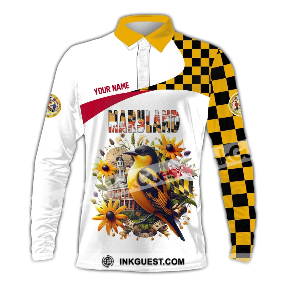 Unisex Shirt, Custom Name Maryland Shirt, Maryland Polo Long Sleeve, Maryland Gift