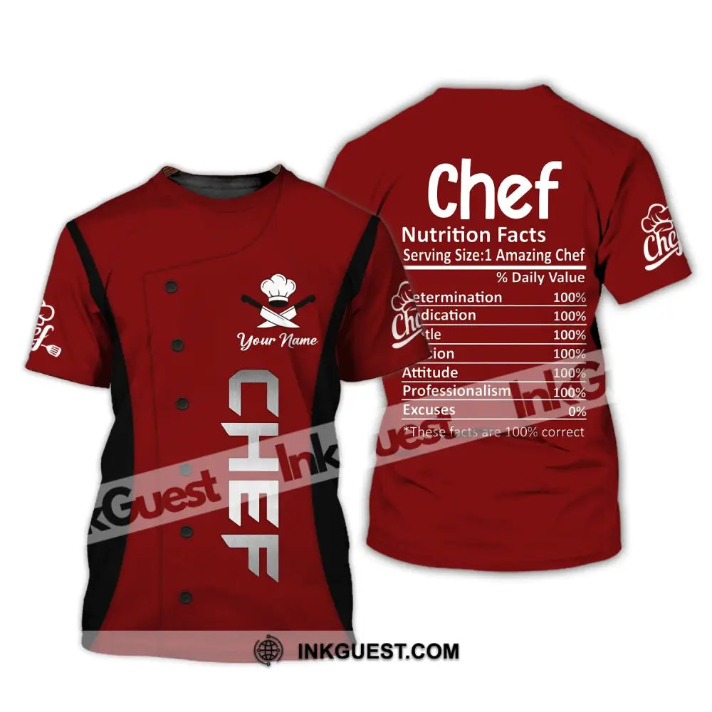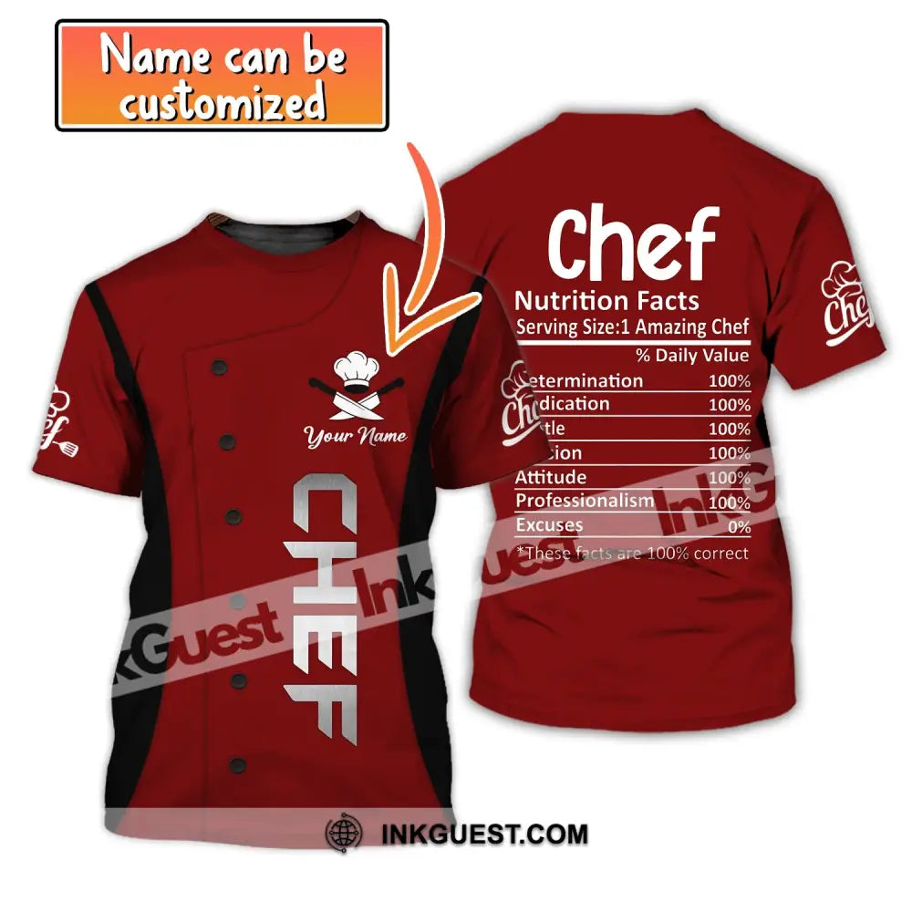 Chemise unisexe, chemise de nom personnalisée pour chef, faits nutritionnels du chef, vêtements de cuisine