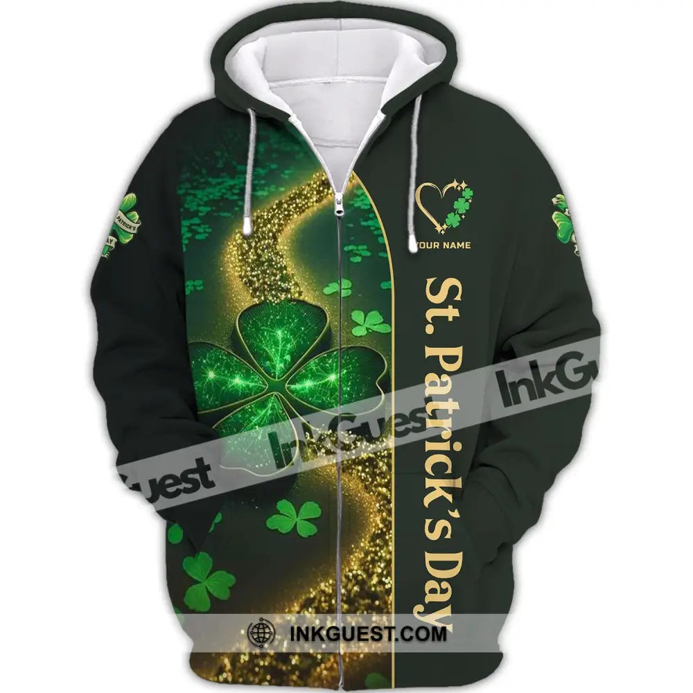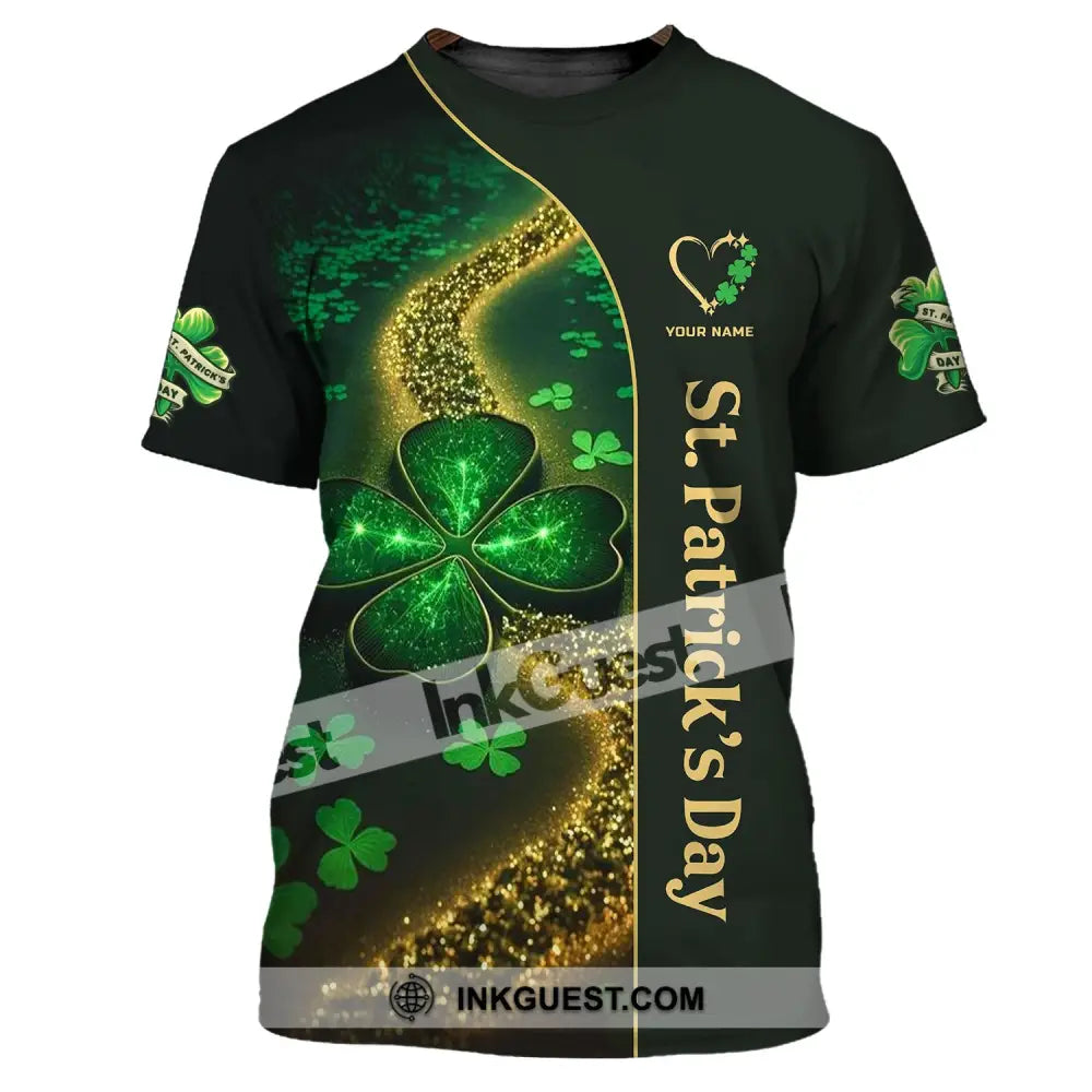 Chemise unisexe - T-shirt nom personnalisé - ST. Vêtements de la Saint-Patrick, chemise coeur avec trèfle à 4 feuilles