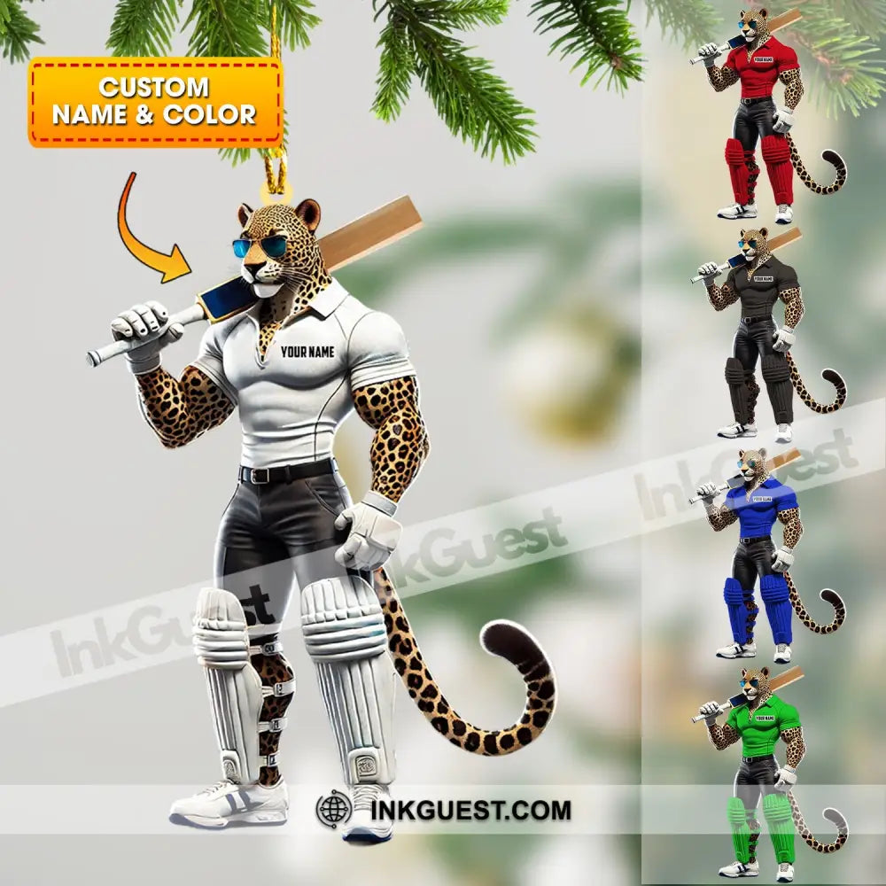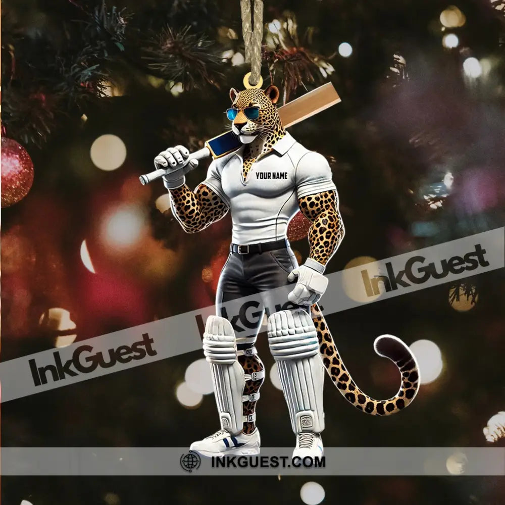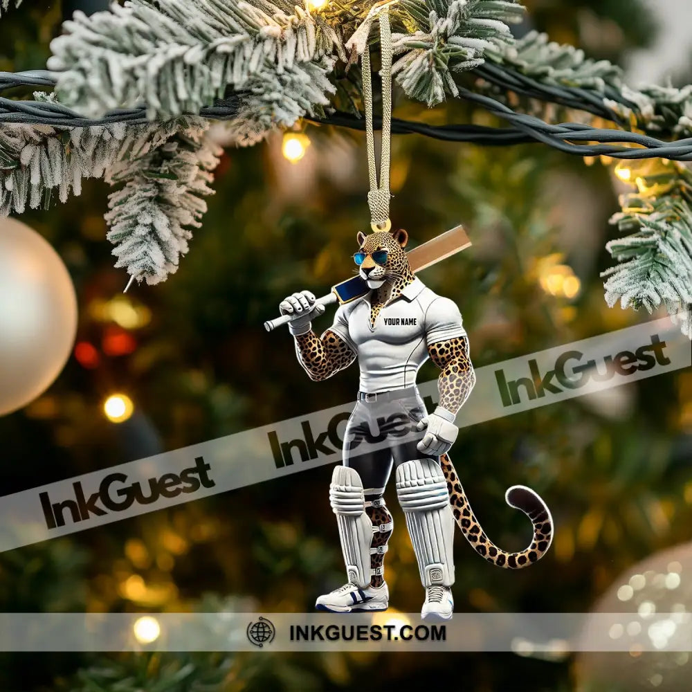 Cricket Ball Leopard Christmas Ornament, Personalized Ornament