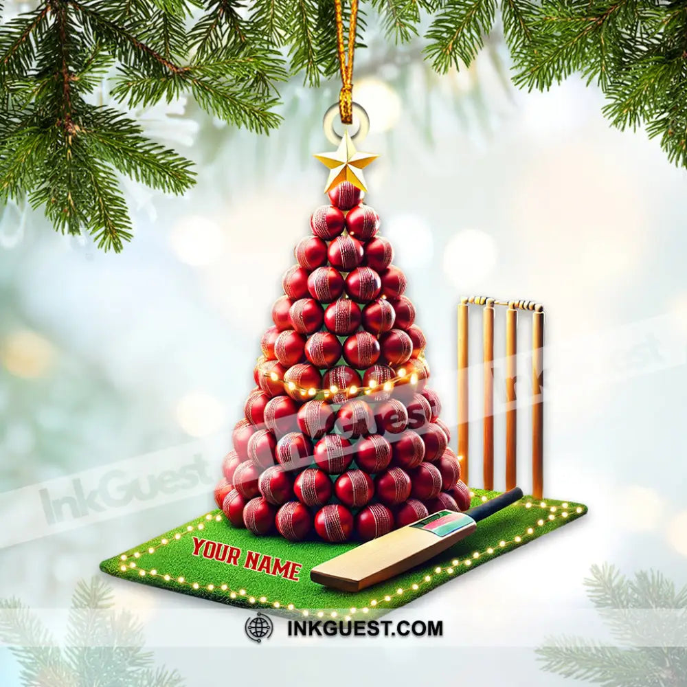 Cricket Ball Tree Christmas Ornament, Personalized Ornament