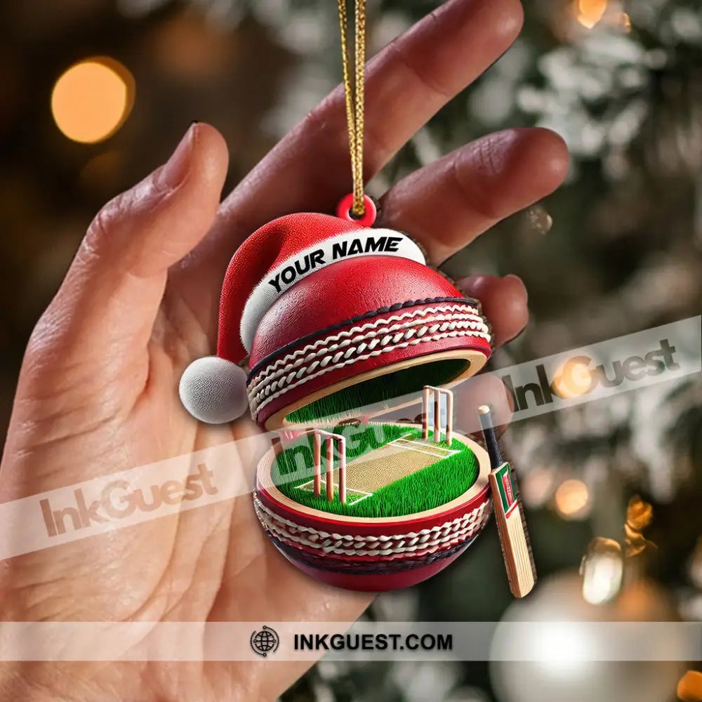 Custom Name Cricket Ball Ornament, Christmas Gift for Cricket Ball Lover