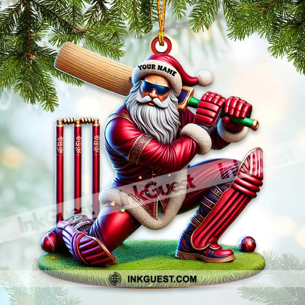 Custom Name Cricket Ball Santa Ornament, Cricket Ball Lover Christmas Gift