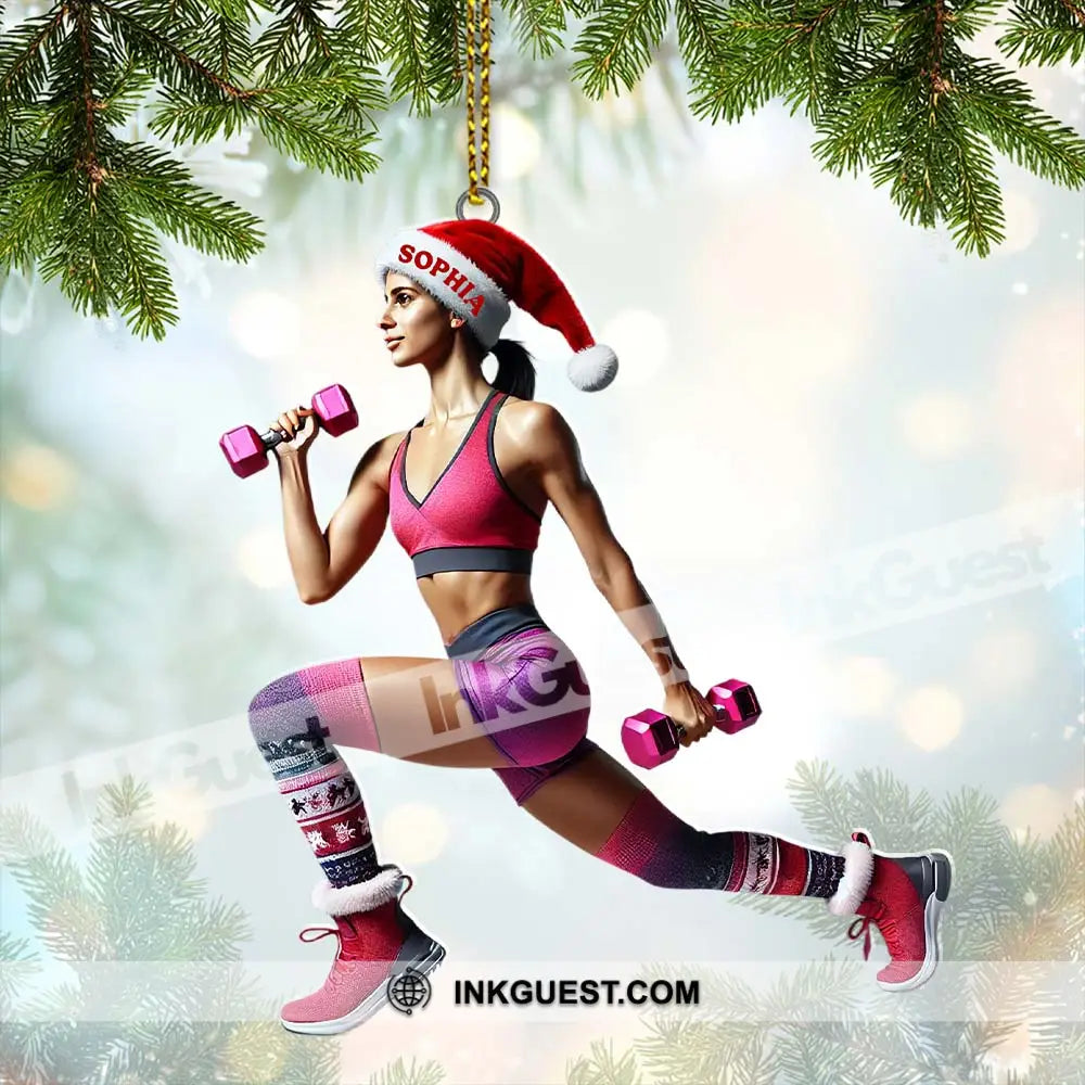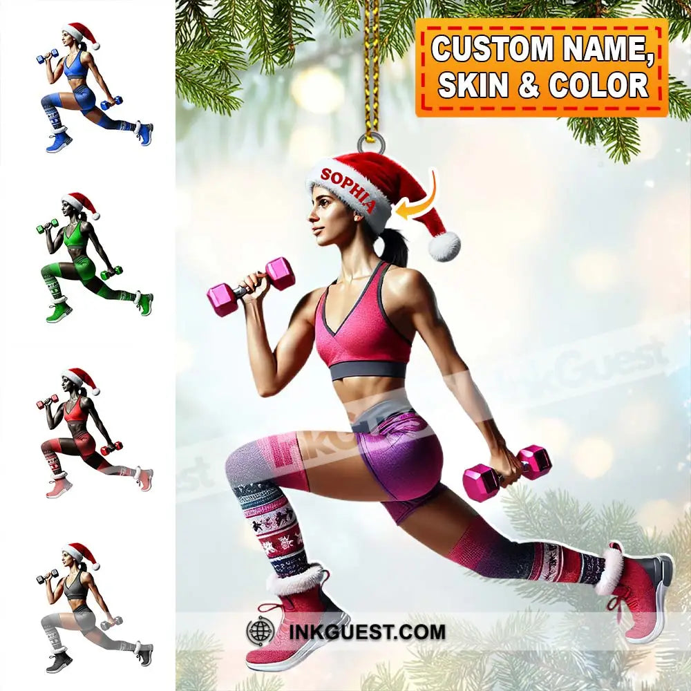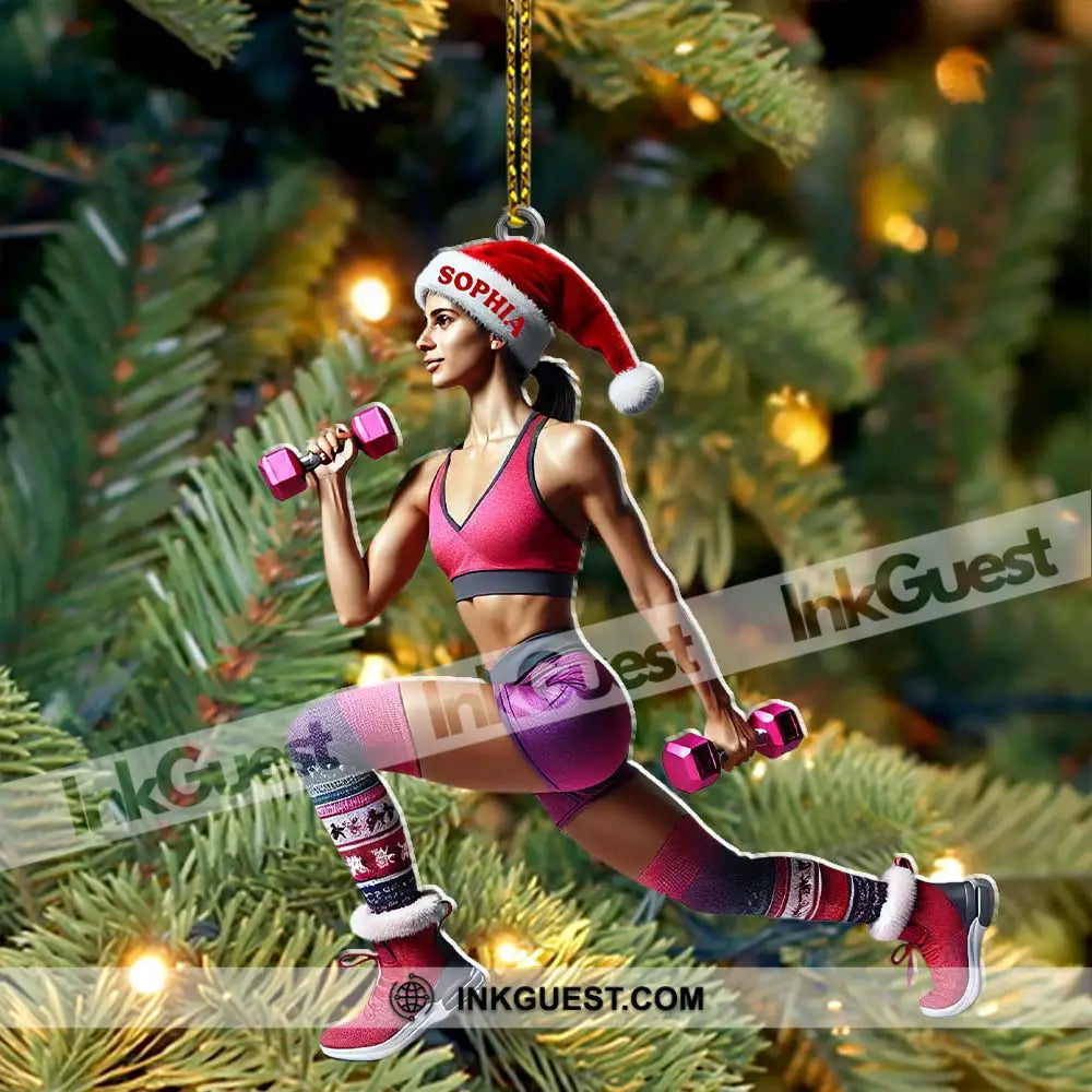 Custom Name Gym Work Out Woman Ornament, Gymnastics Christmas Gift