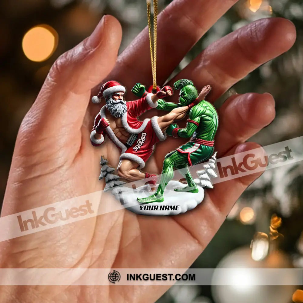 Custom Name Muay Thai Santa Ornament, Christmas Gift for Muay Thai Lover